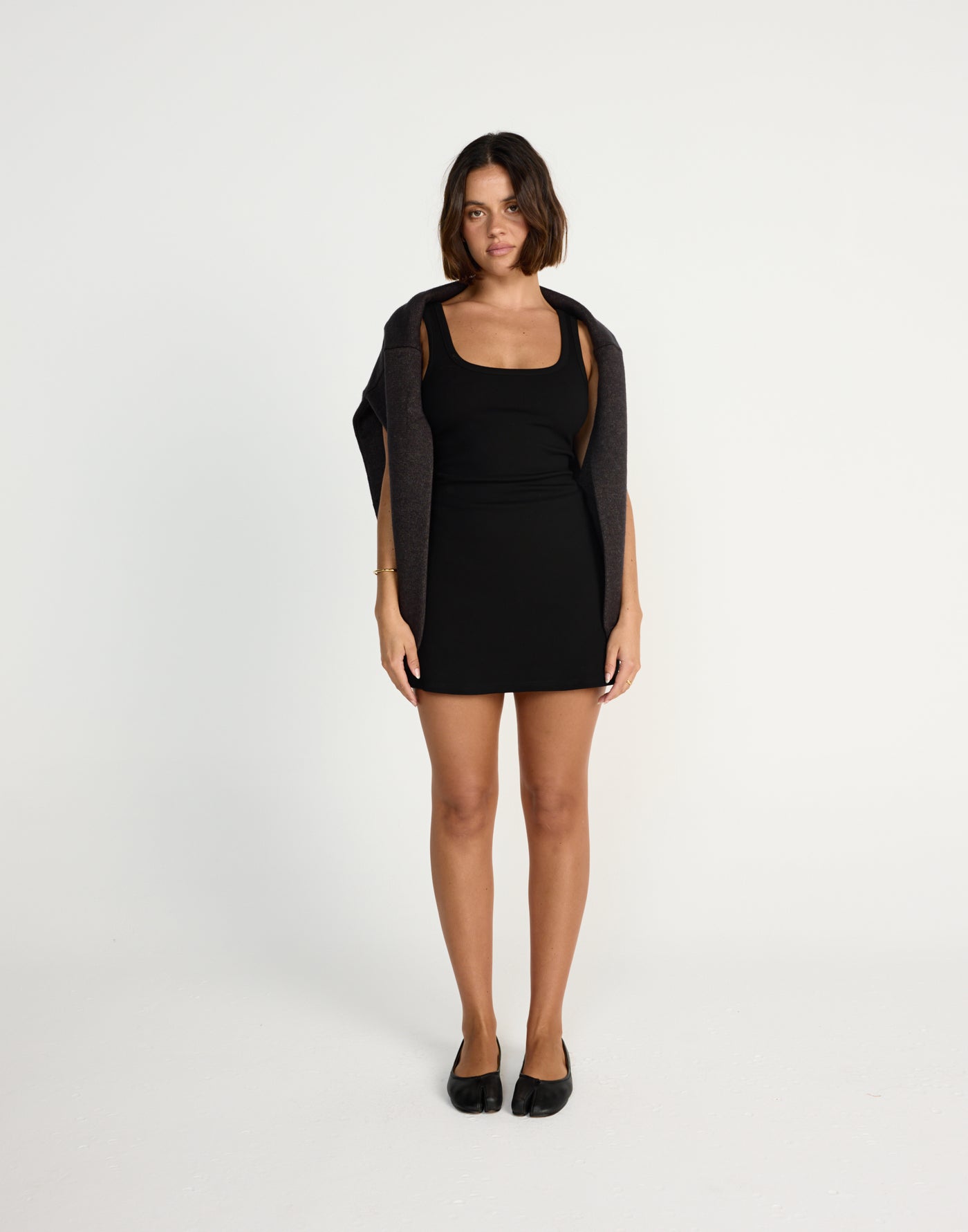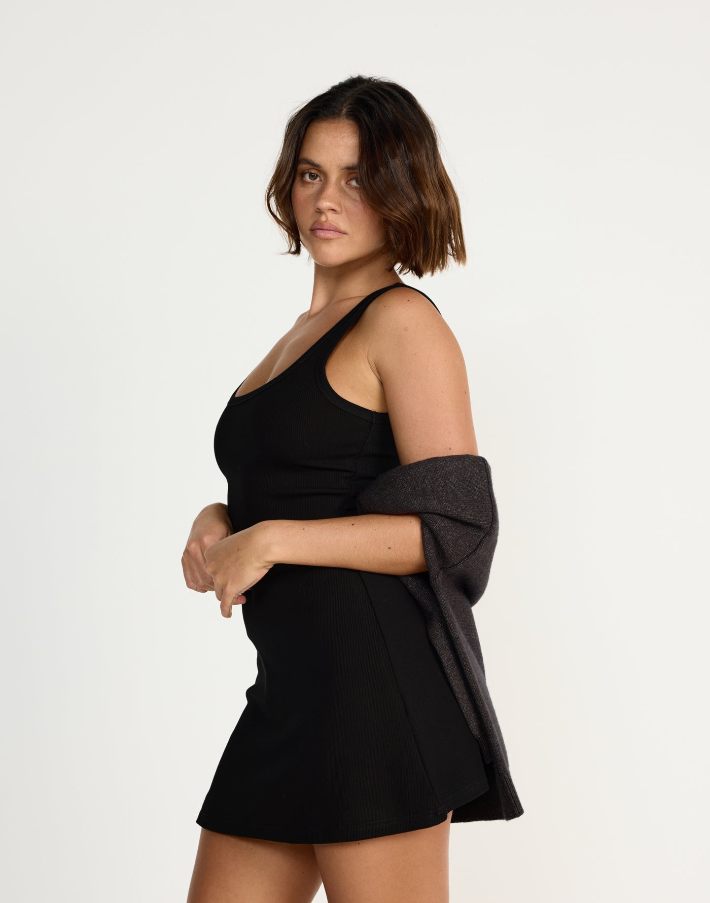 • Black ribbed mini dress