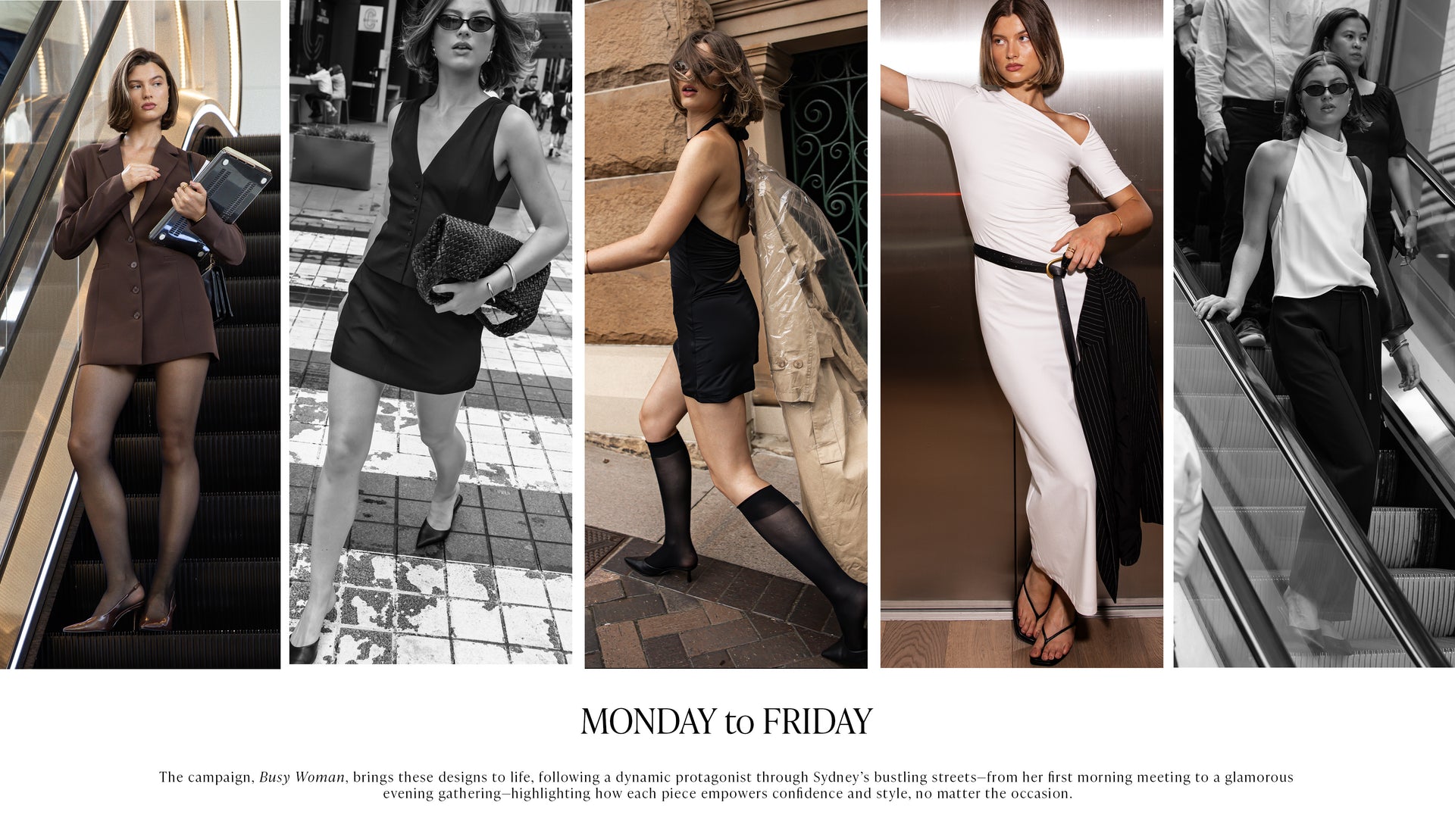 The campaign, Busy Woman, brings these designs to life, following a dynamic protagonist through Sydney’s bustling streets—from her first morning meeting to a glamorous evening gathering—highlighting how each piece empowers confidence and style, no matter the occasion.