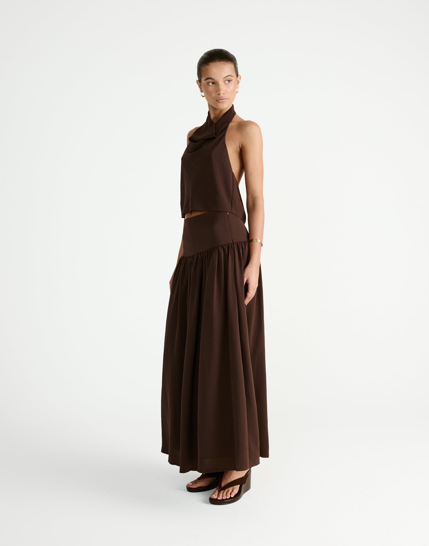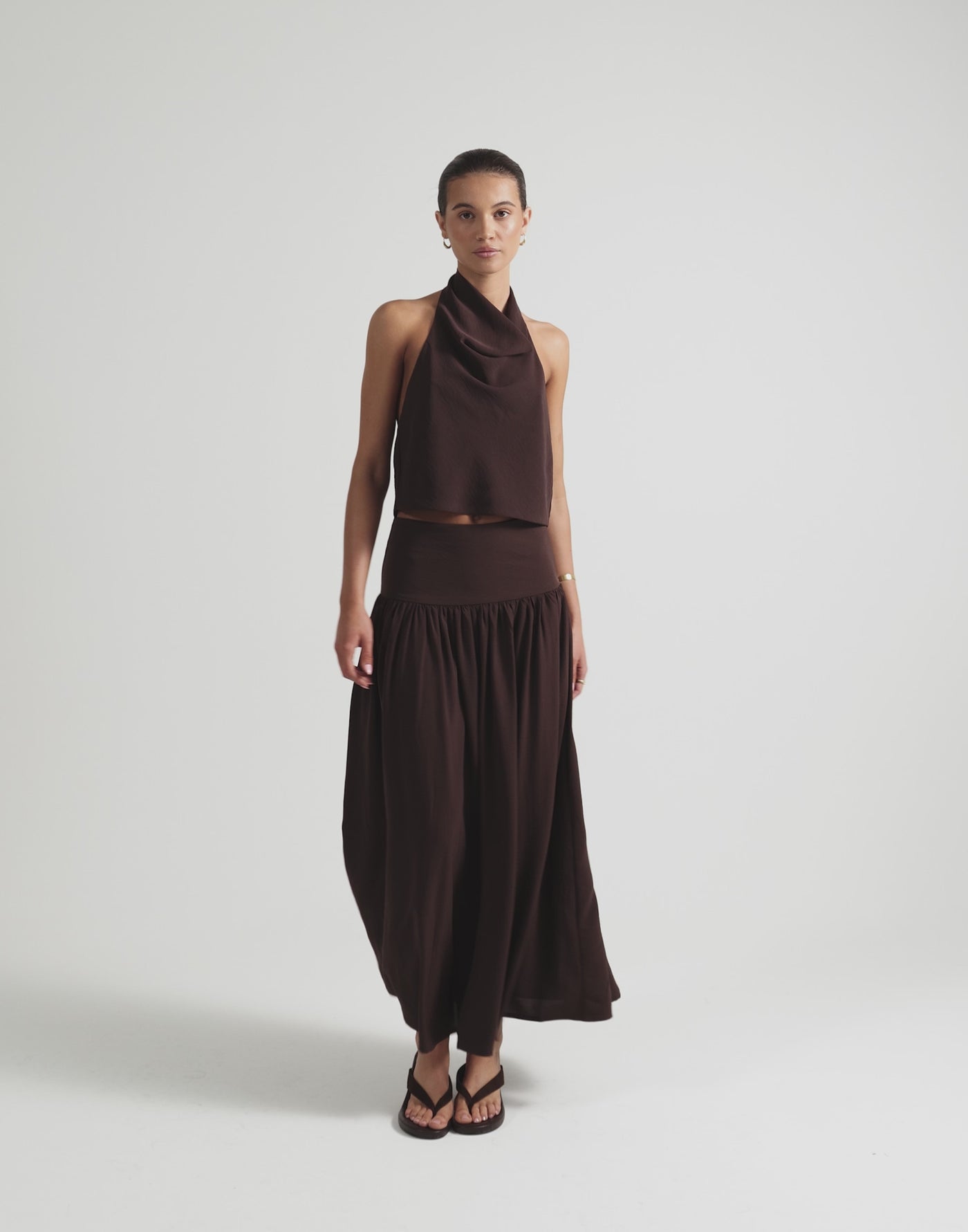 Introducing the Flynn Maxi Skirt, the perfect fusion of flowing elegance and modern design.