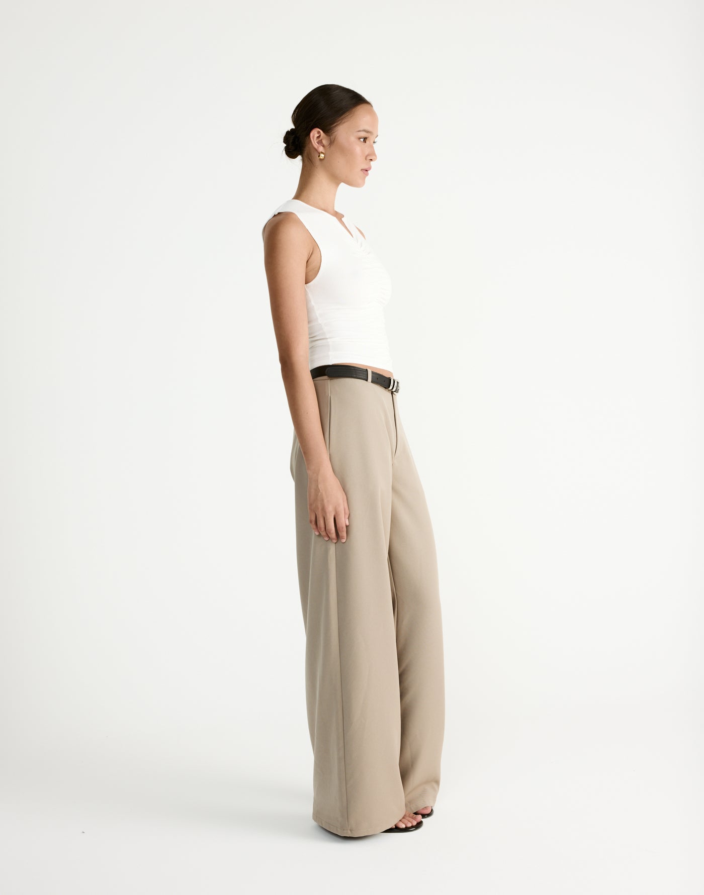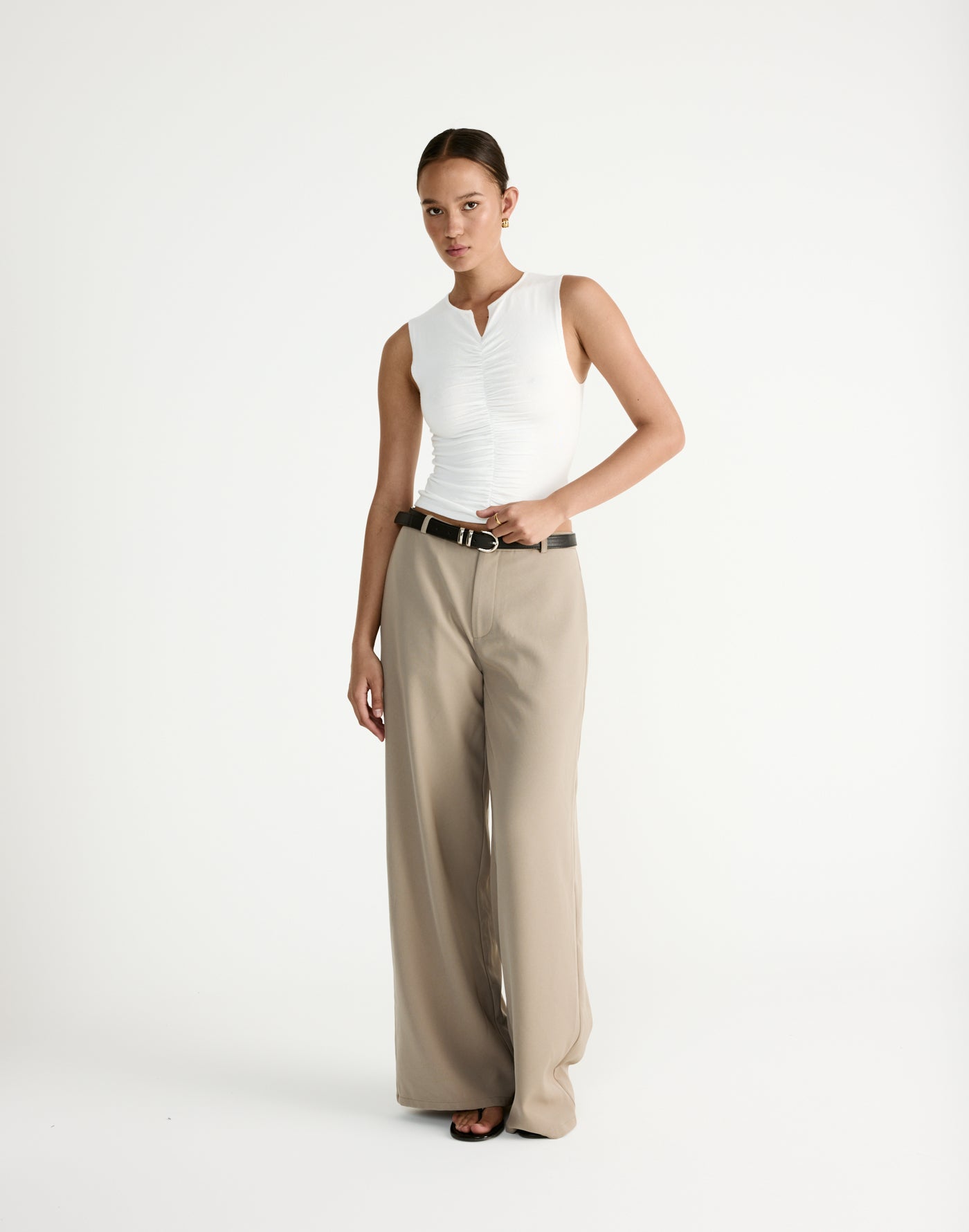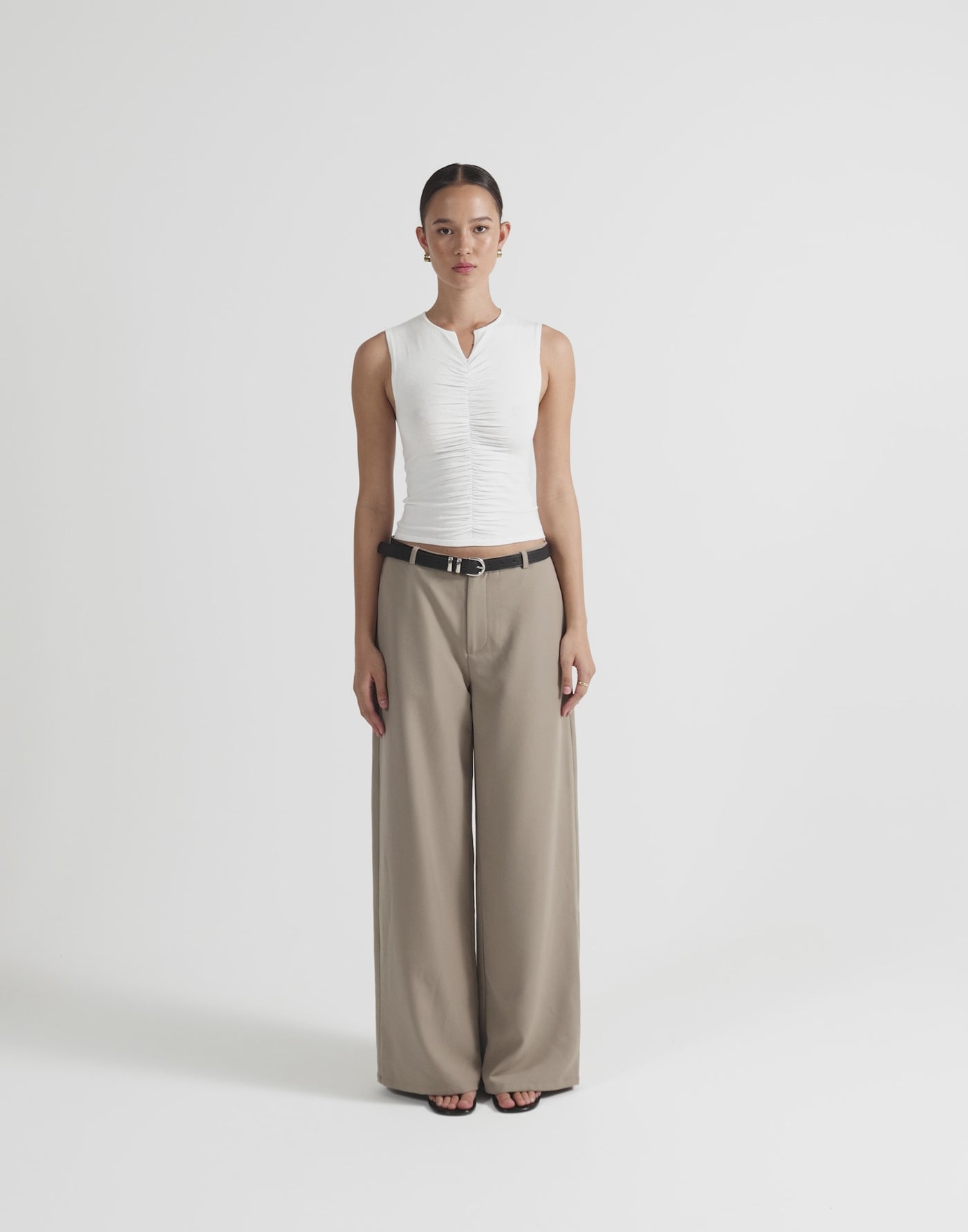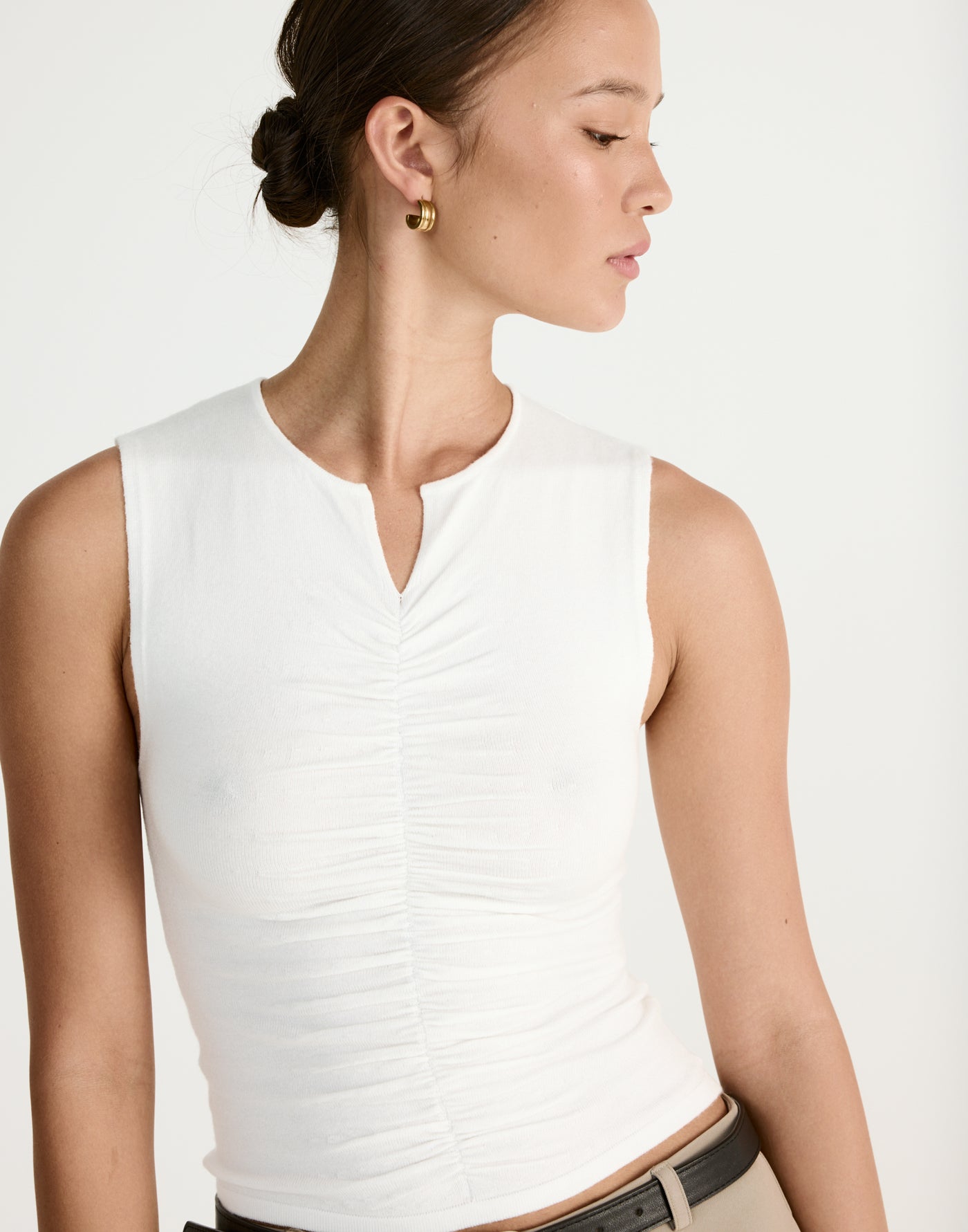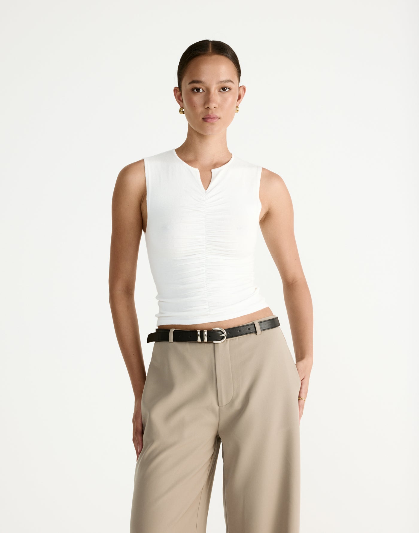 The Laney Top is a sleek, structured essential with contemporary styling and refined tailoring