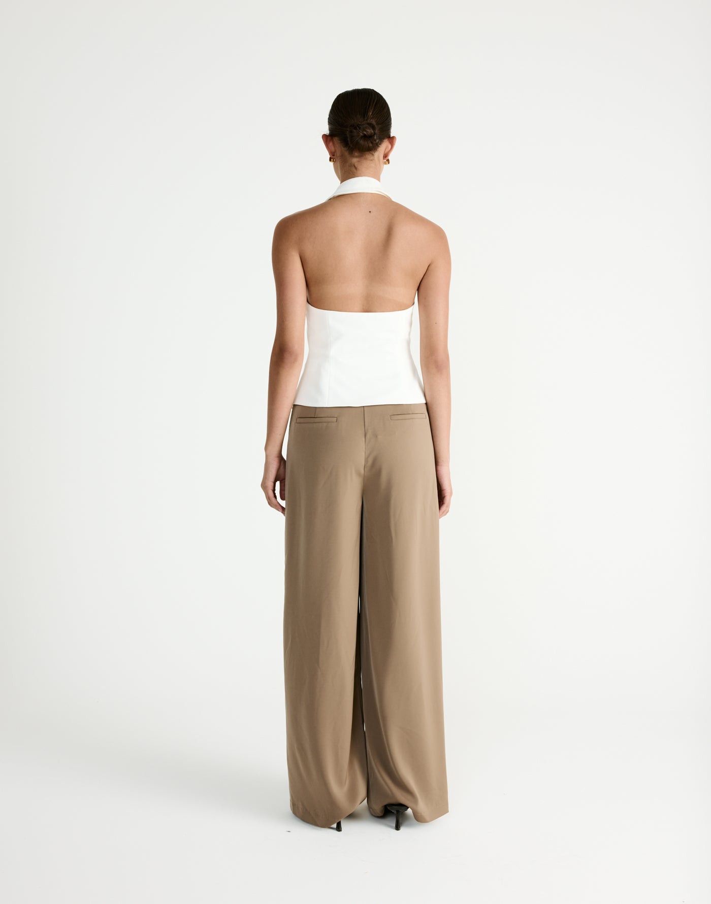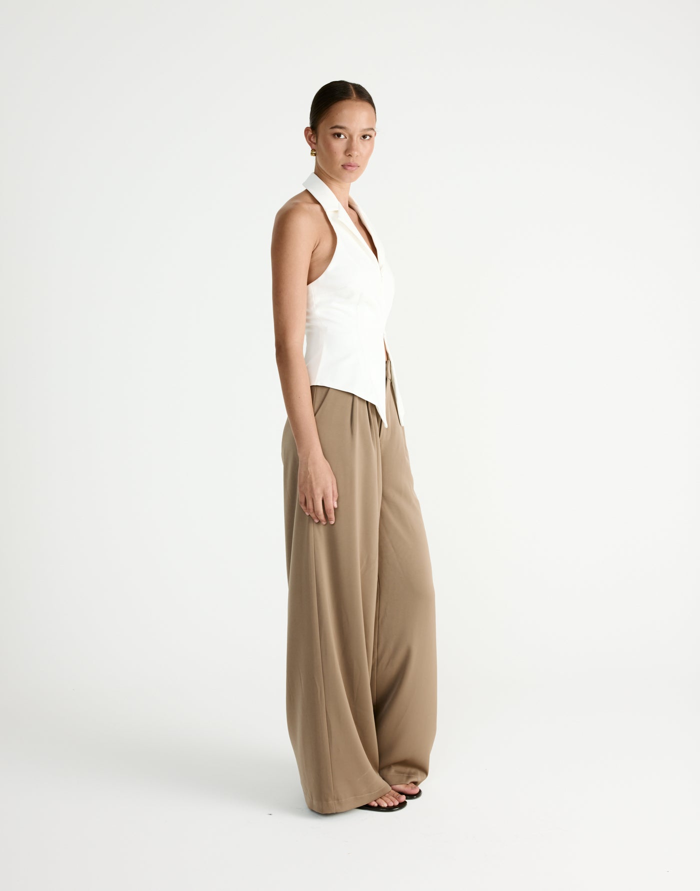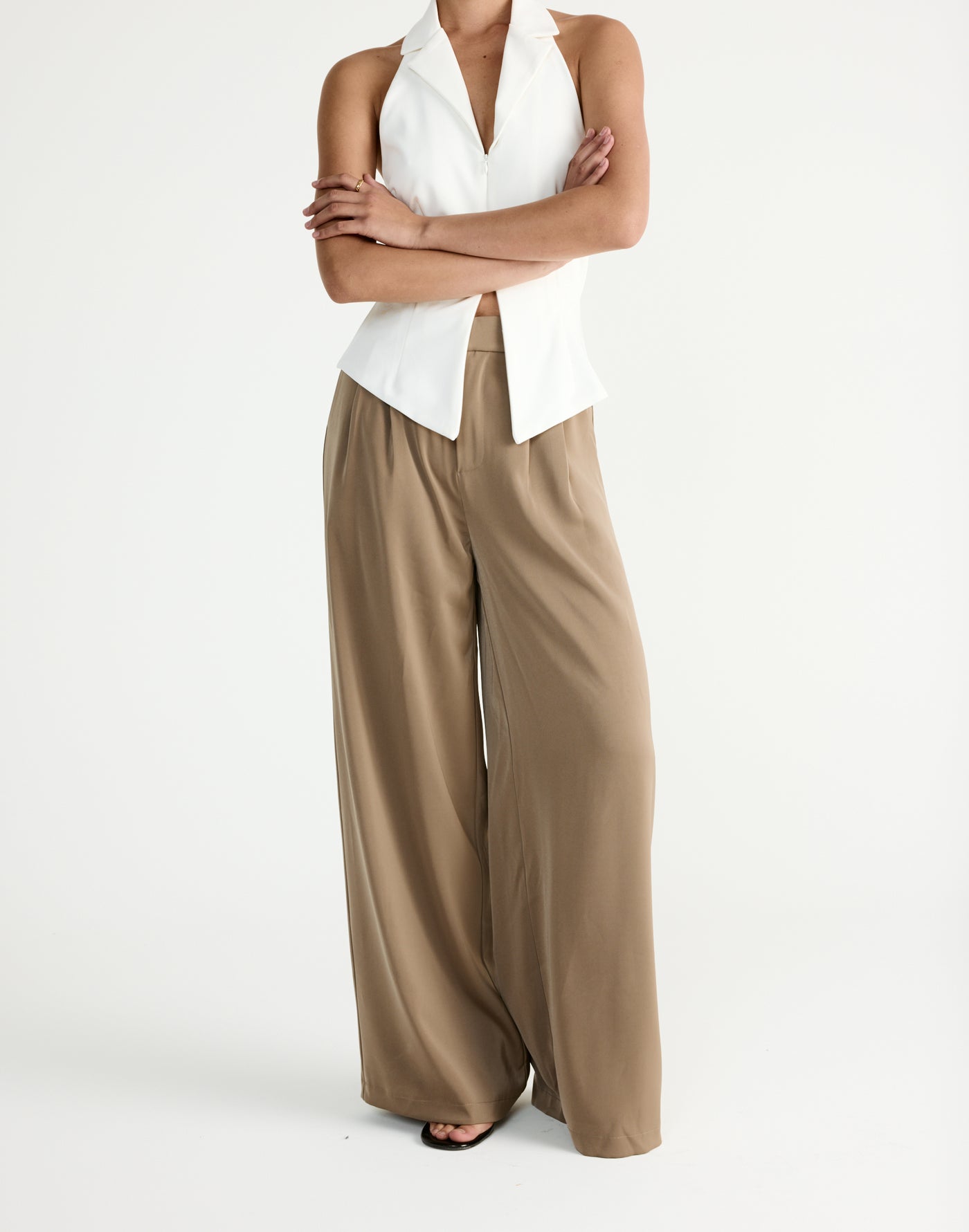 The Ledger Pants combine tailored structure with a relaxed silhouette, offering sleek versatility for everyday styling.