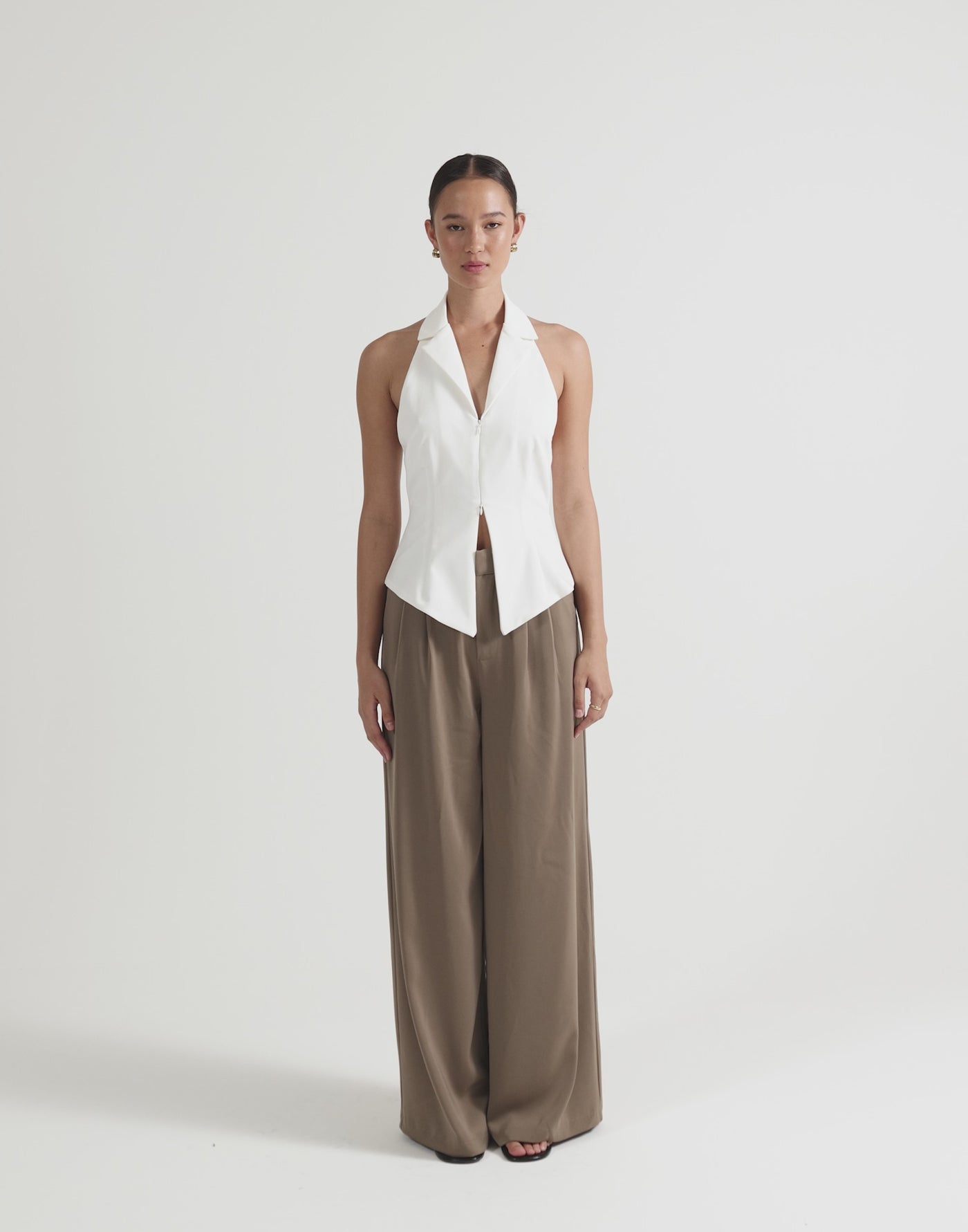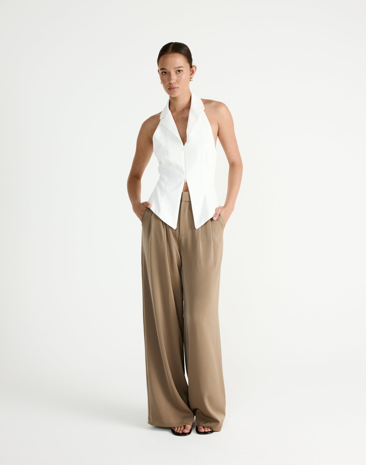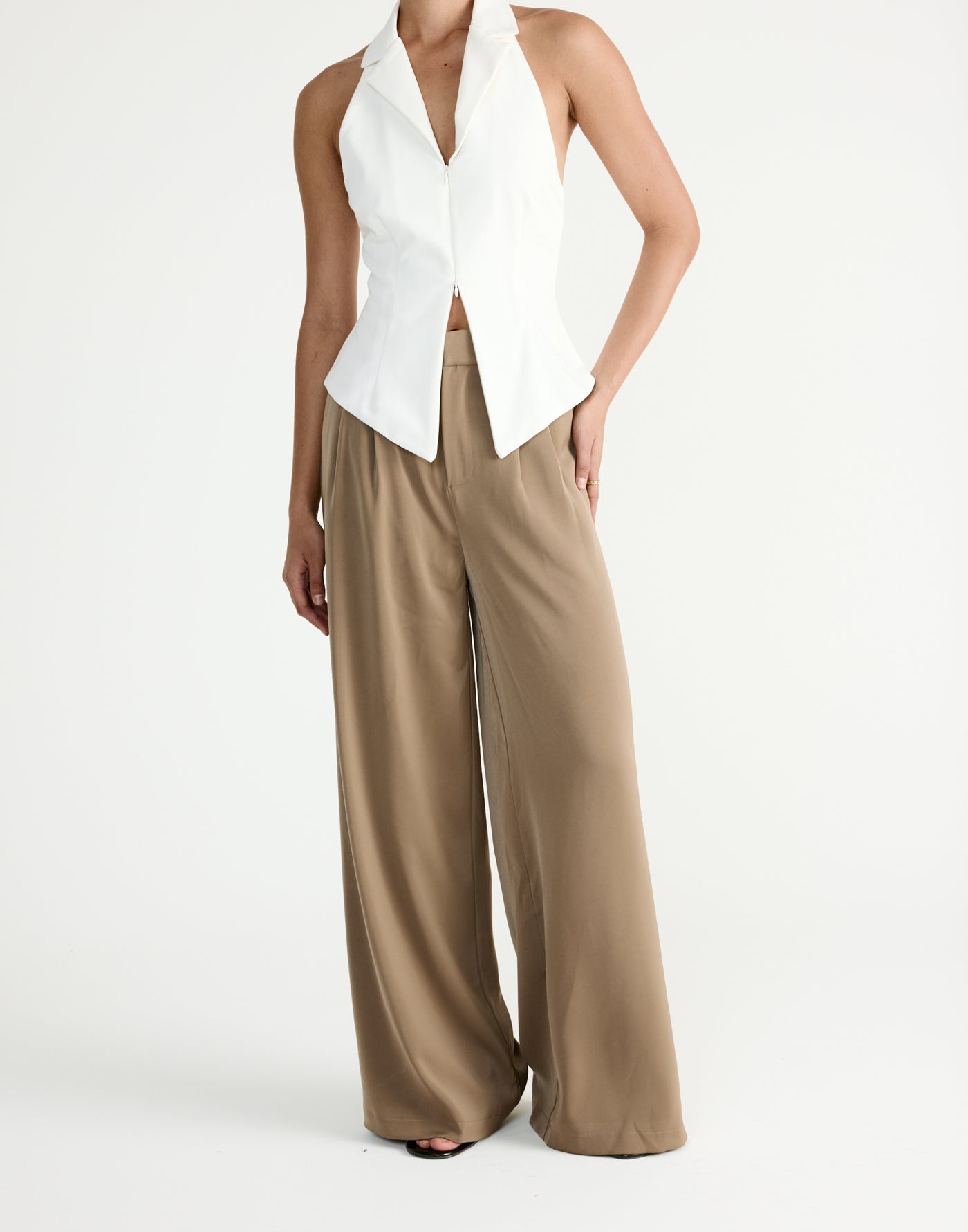 The Ledger Pants combine tailored structure with a relaxed silhouette, offering sleek versatility for everyday styling.