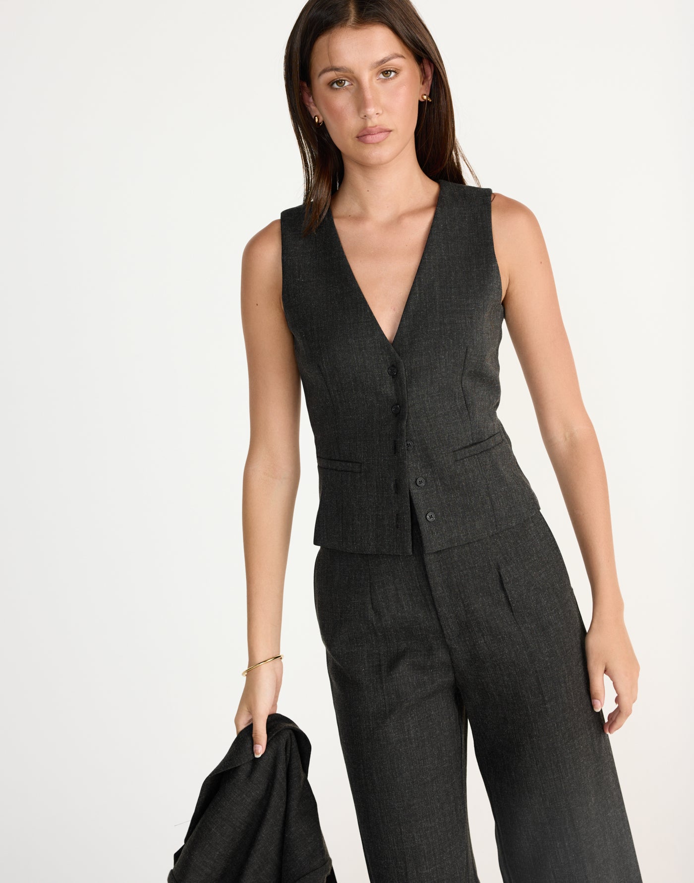 Reagan Vest (Black Marle) | CHARCOAL EXCLUSIVE | V-neckline vest top - Women&