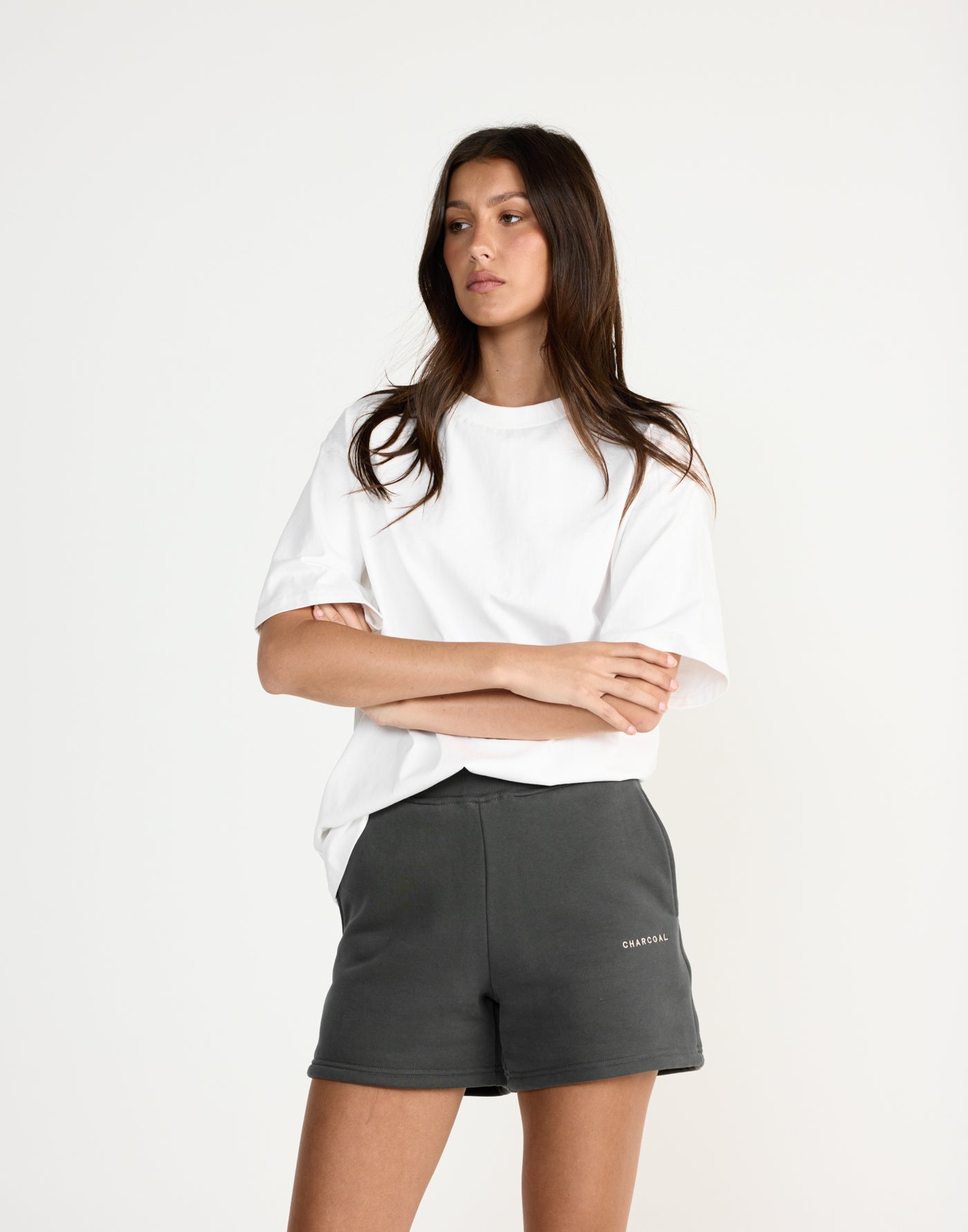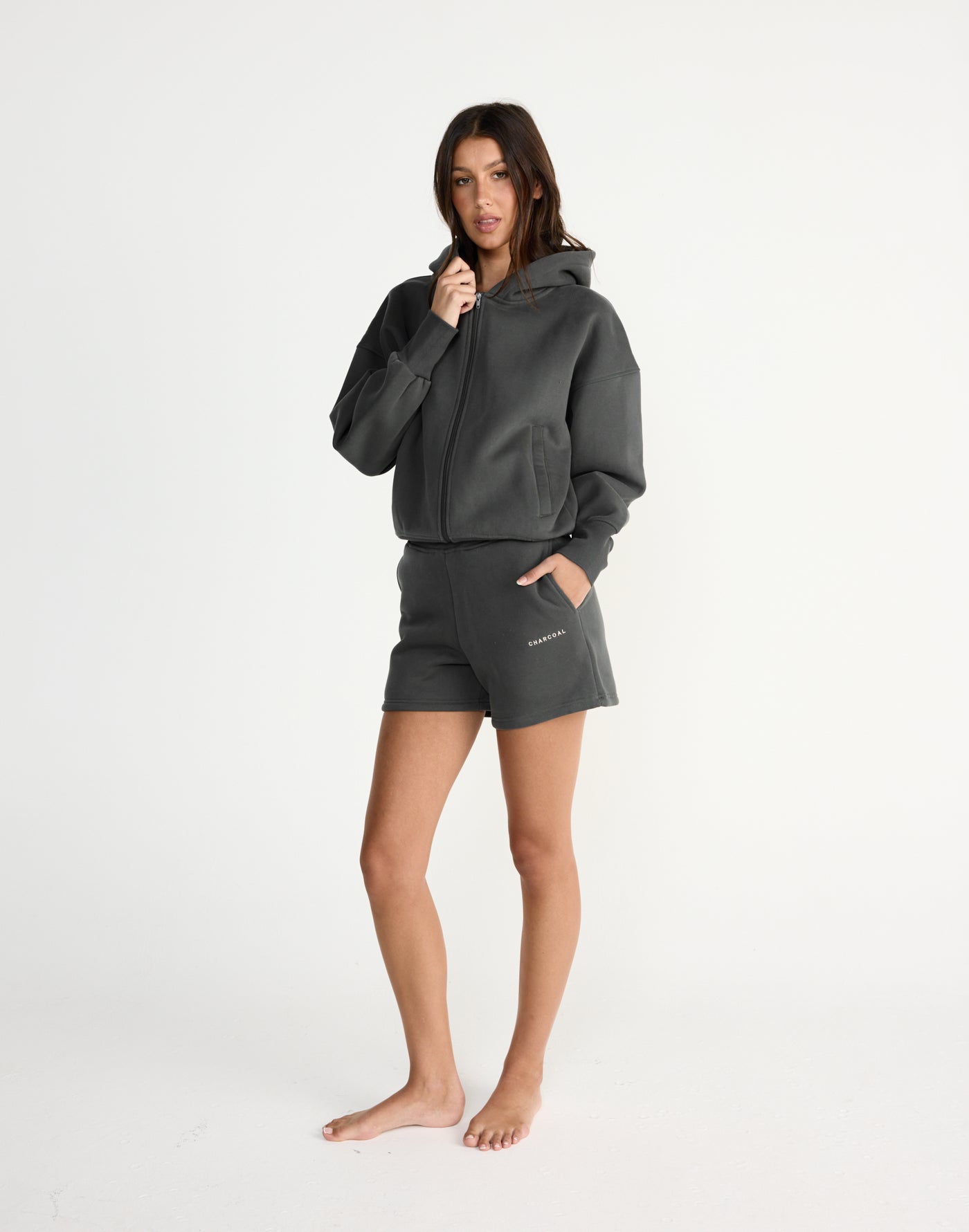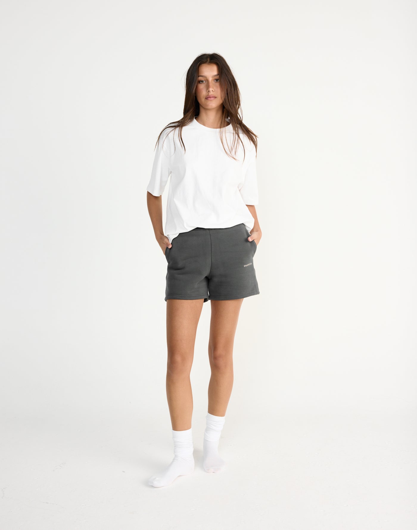 River Sweat Shorts (Slate) | CHARCOAL EXCLUSIVE | High waisted tracksuit shorts with fleece lining - Women&