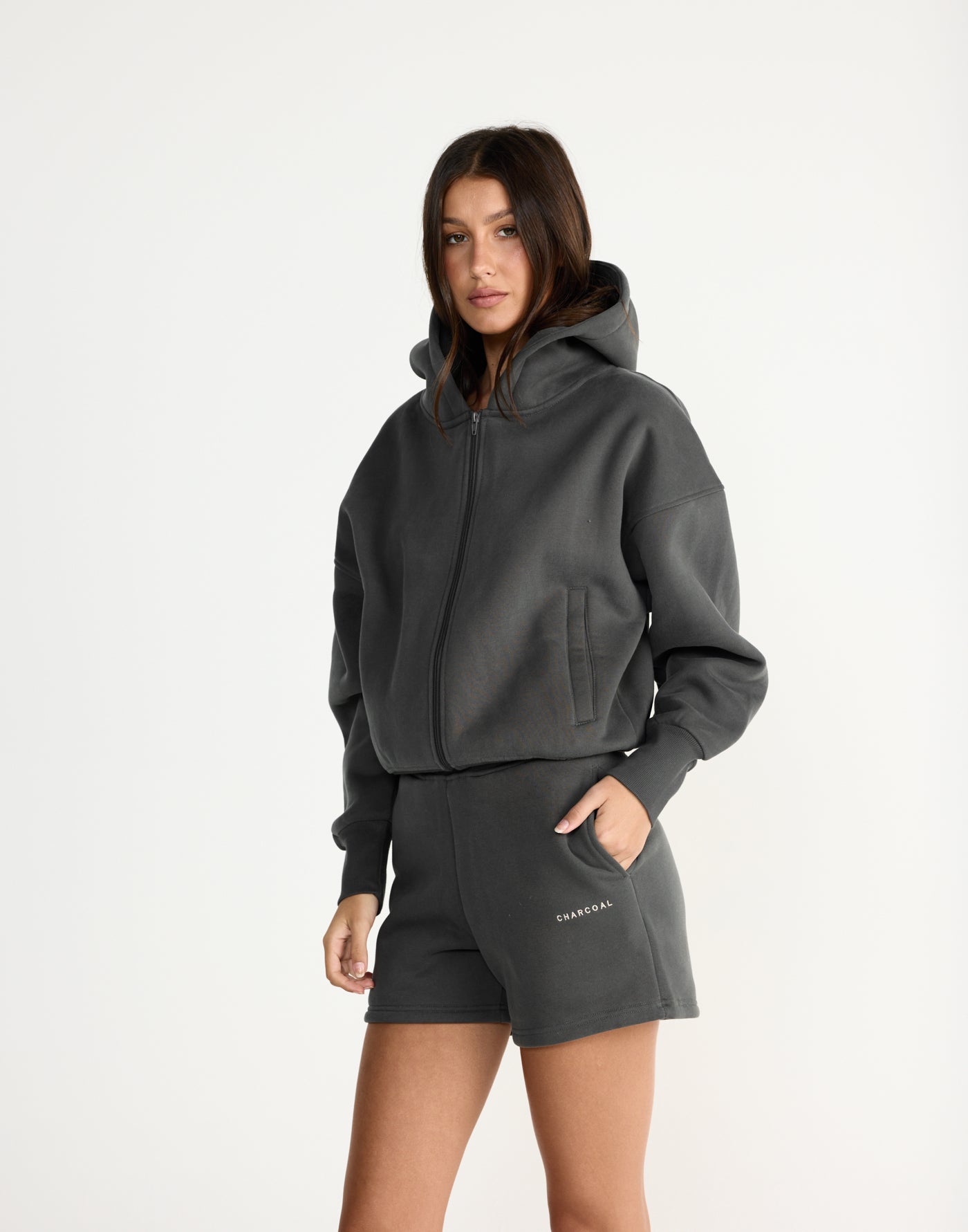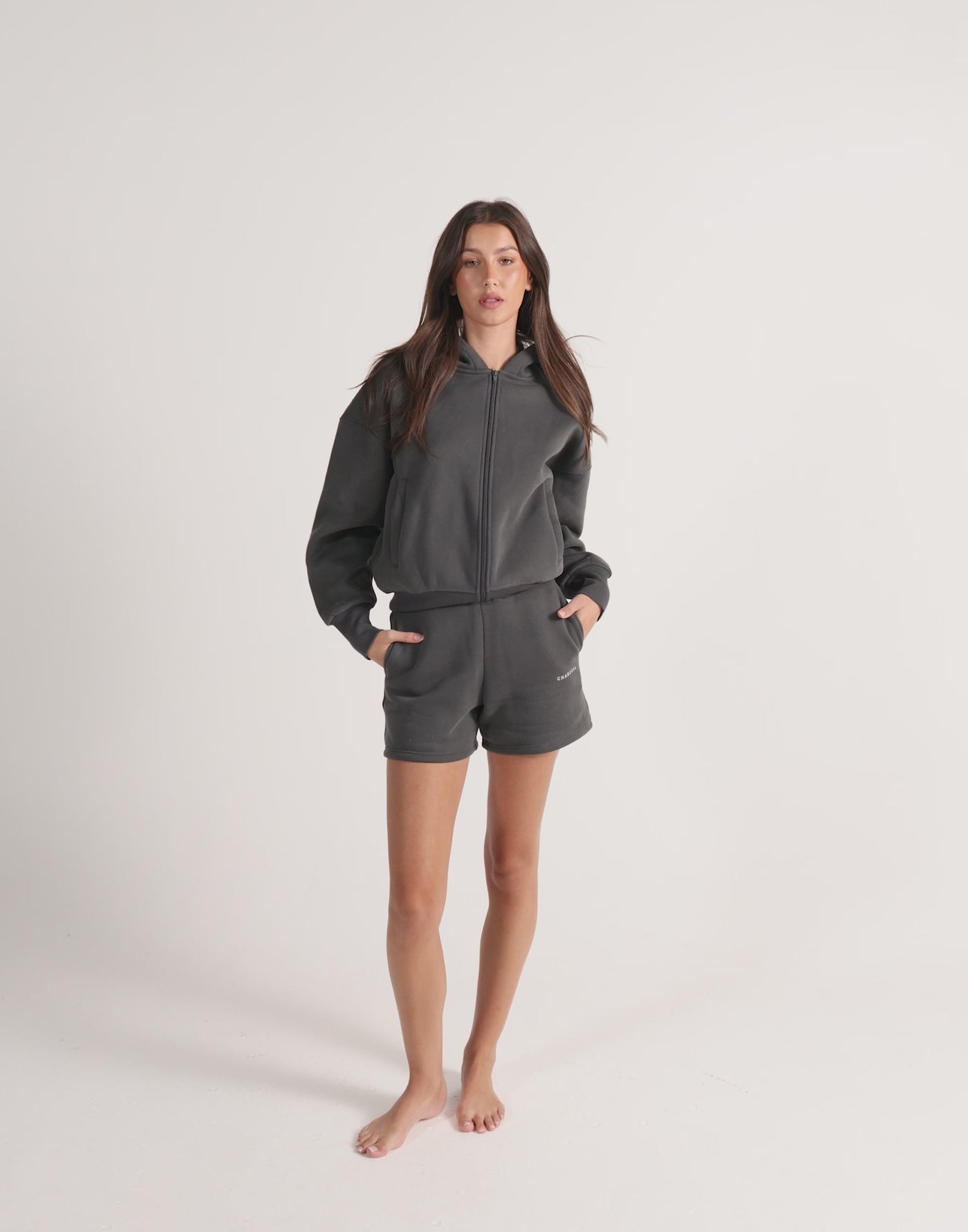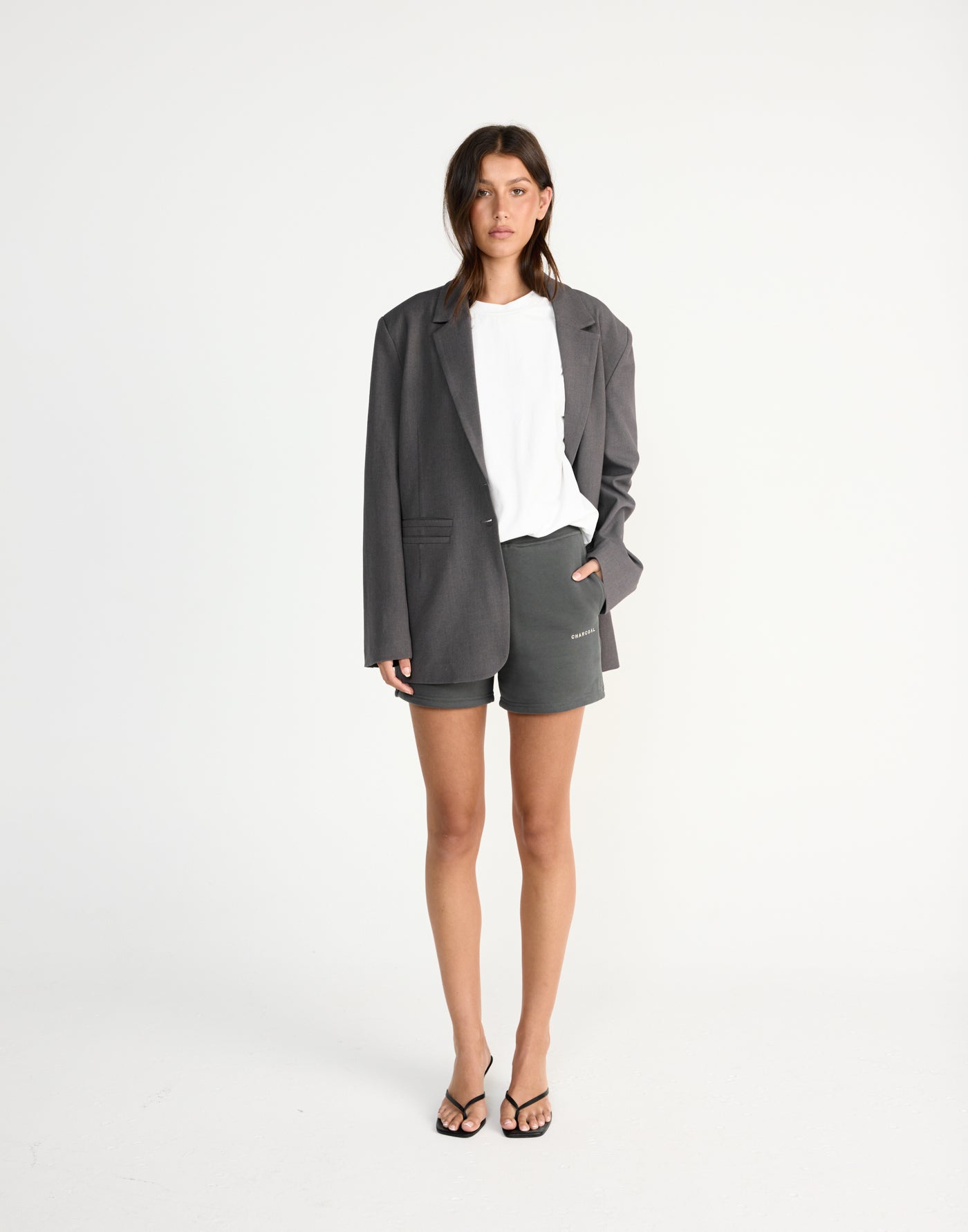 River Sweat Shorts (Slate) | CHARCOAL EXCLUSIVE | High waisted tracksuit shorts with fleece lining - Women&