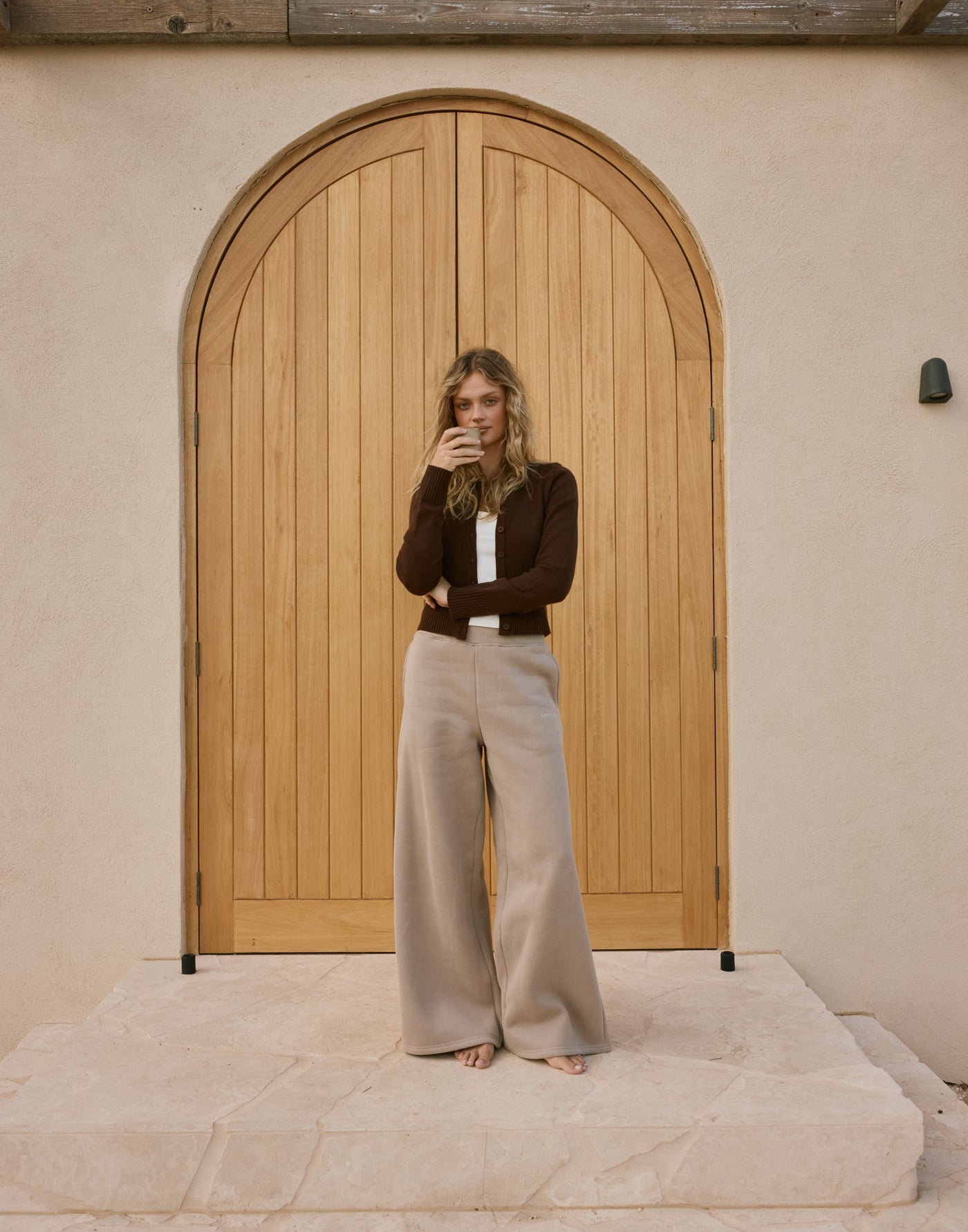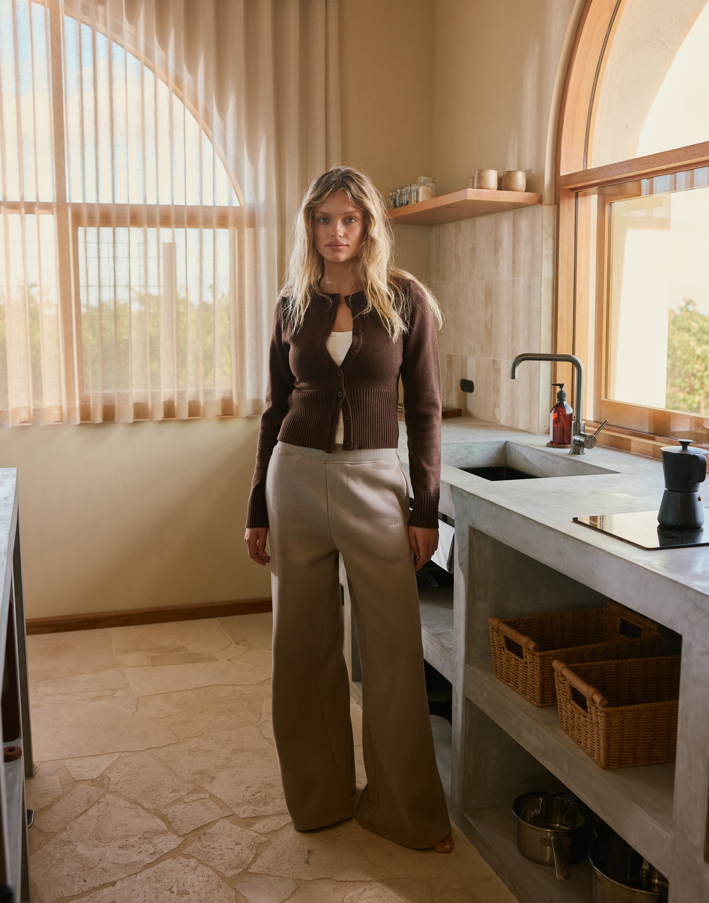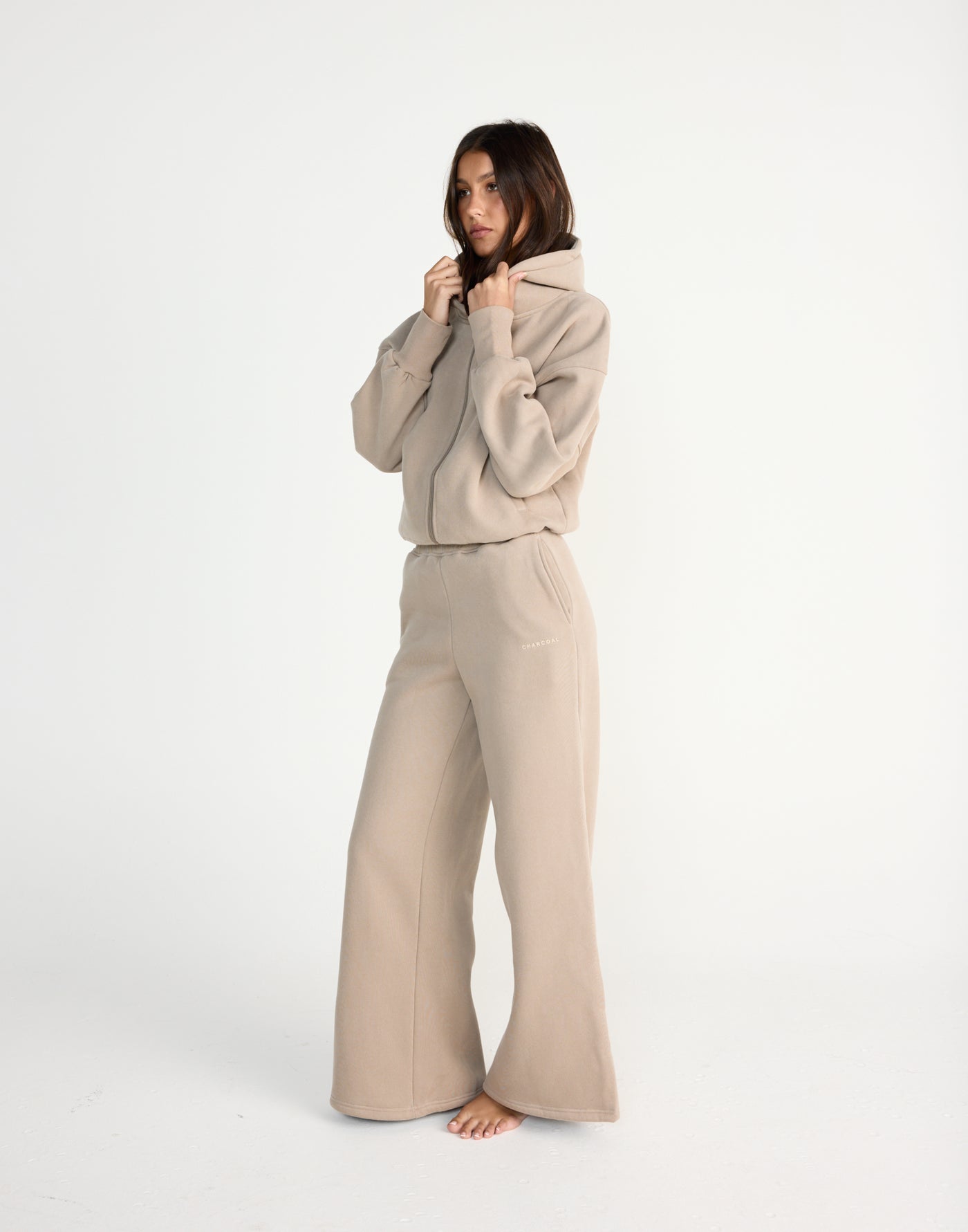 River Wide Leg Tracksuit Pants (Stone) | CHARCOAL EXCLUSIVE | High waisted tracksuit pants with a wide leg - Women&