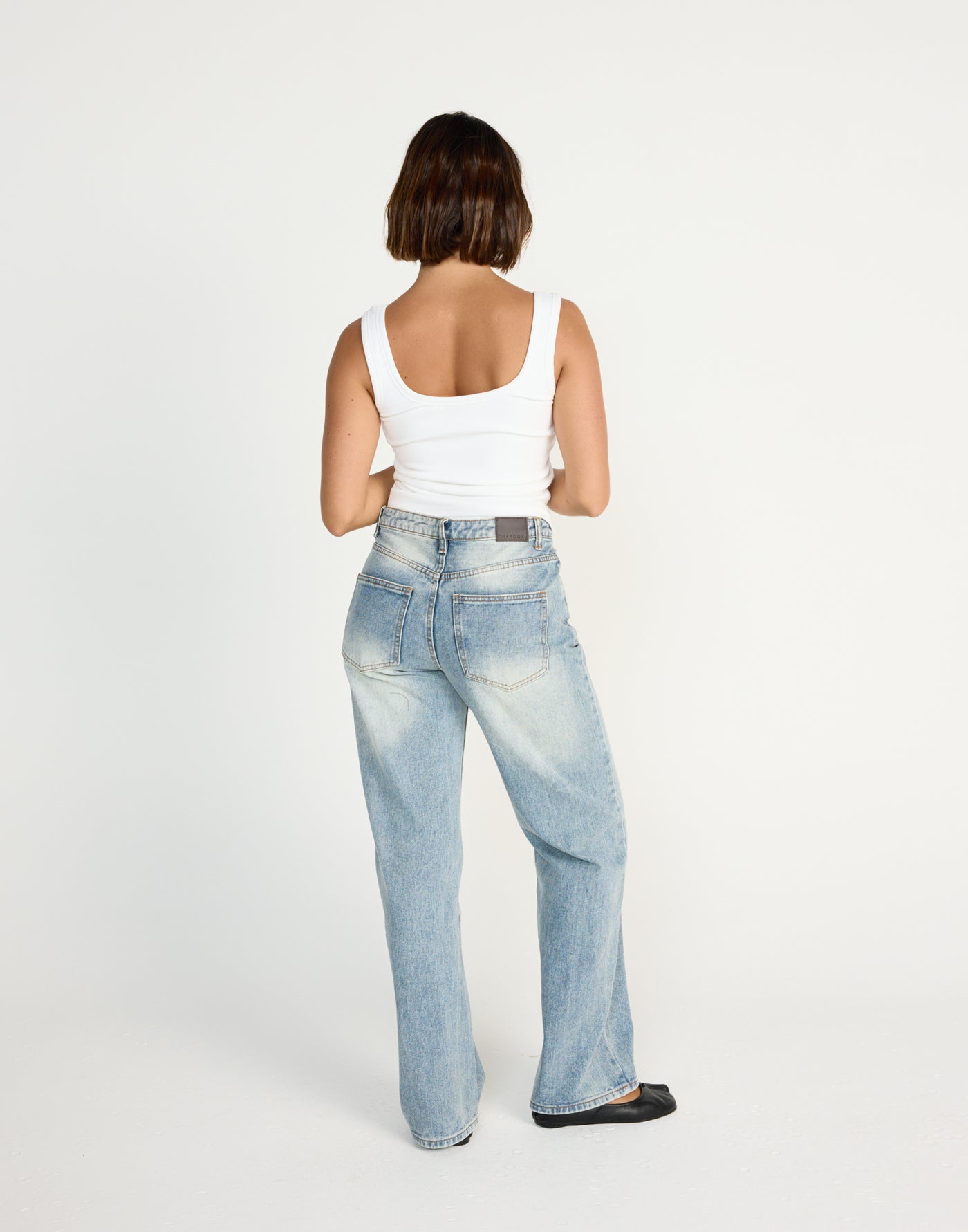 The Ryan Jeans are low-waisted with a straight leg, featuring functional pockets and belt loops for a classic, easy fit.
