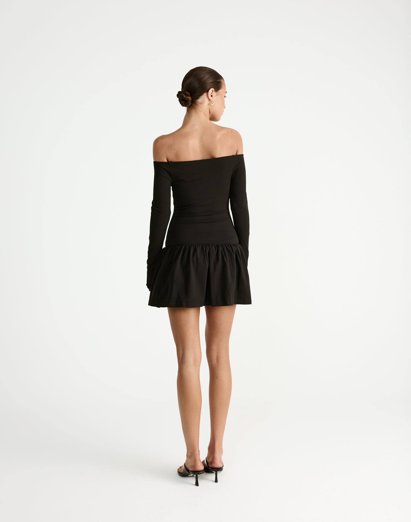 The Yanna Long Sleeve Dress is a fluid, mini-length silhouette designed for effortless day-to-evening wear
