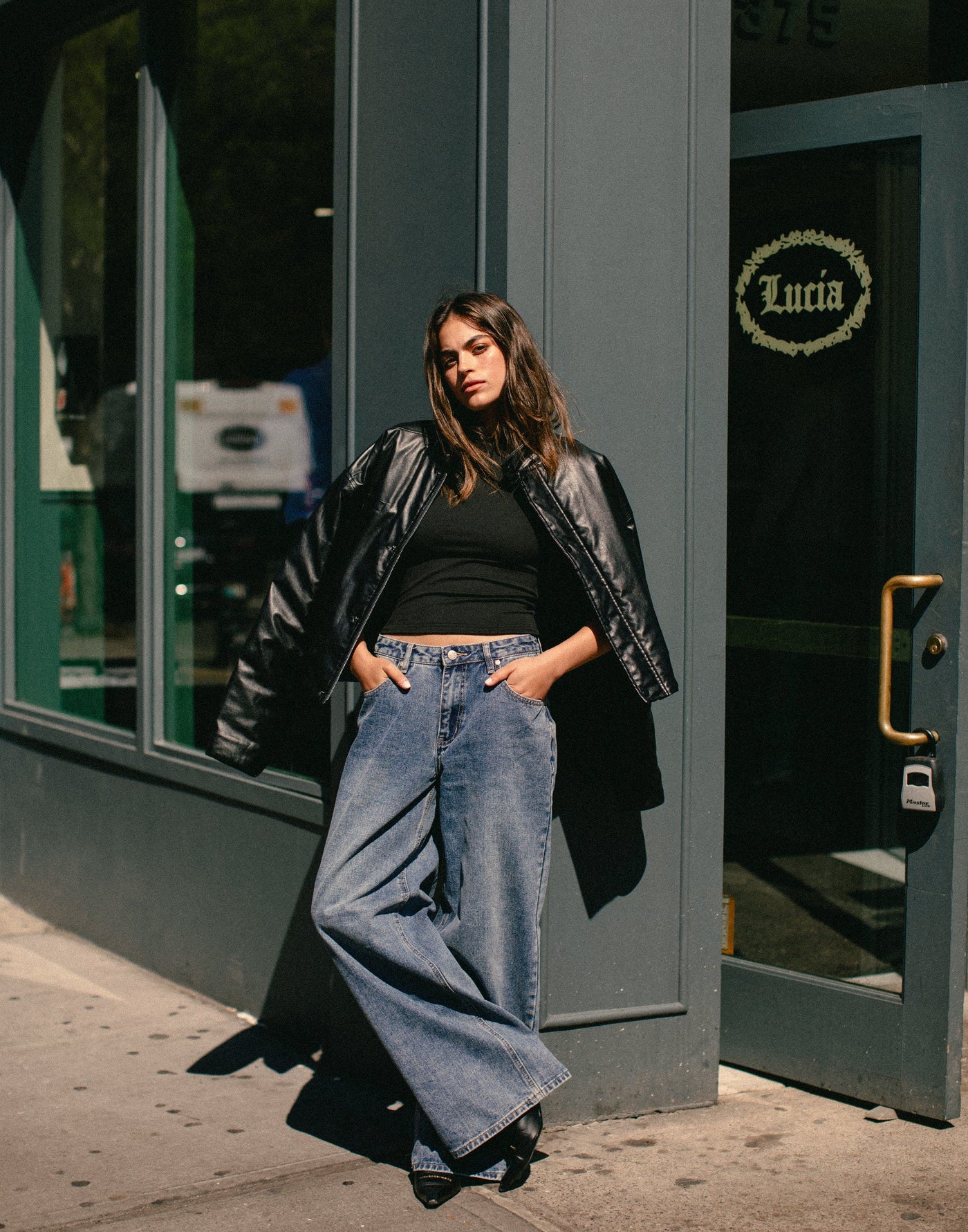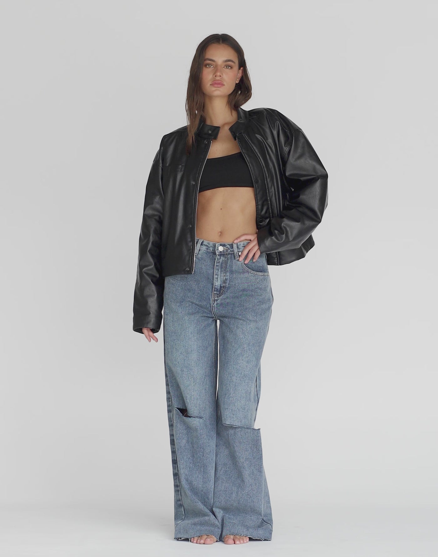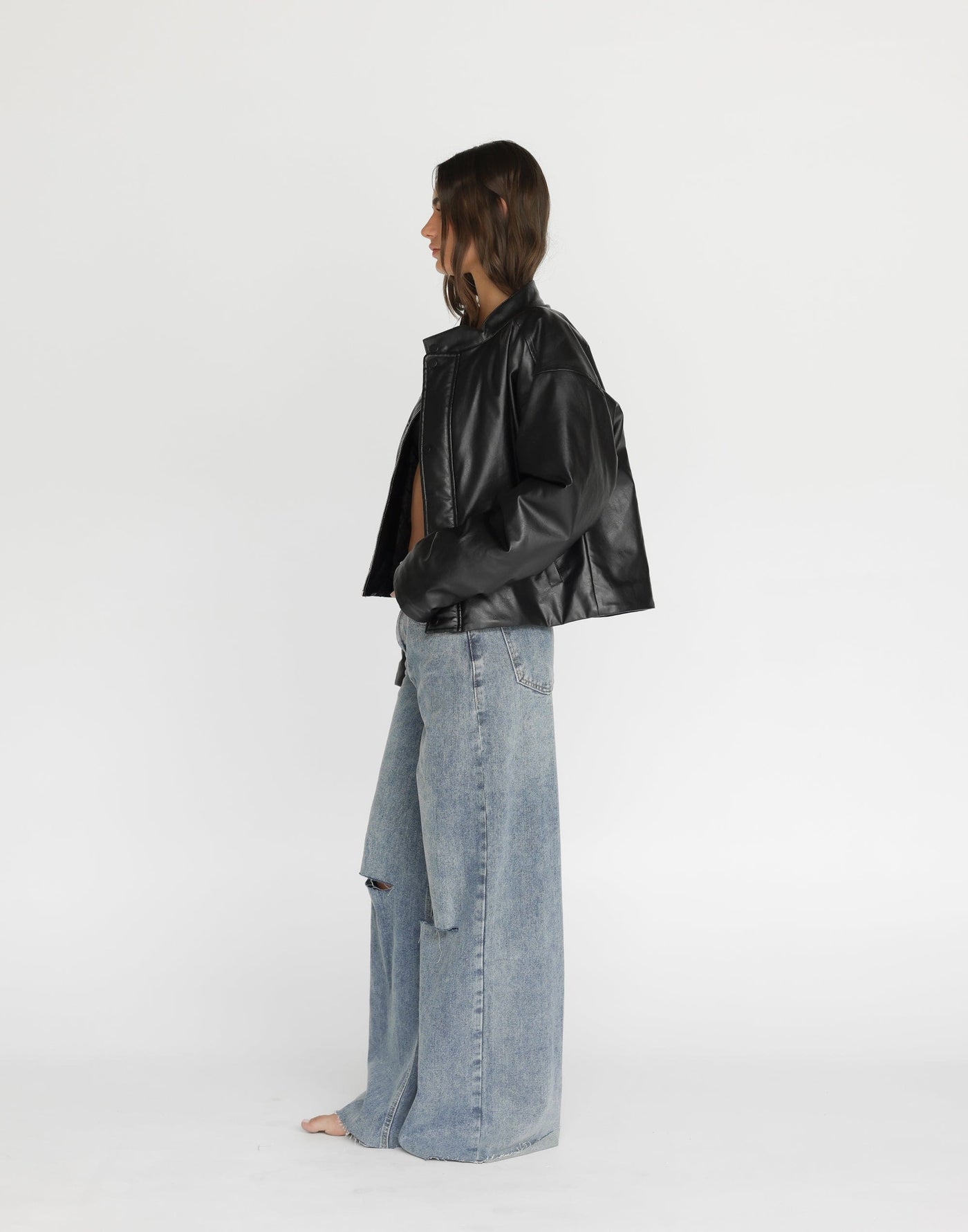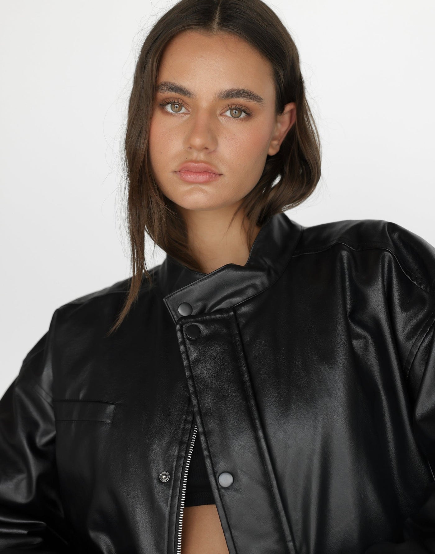 Isaiah Jacket (Black) | CHARCOAL Exclusive - Slightly Cropped Collared Faux Leather Jacket - Women&