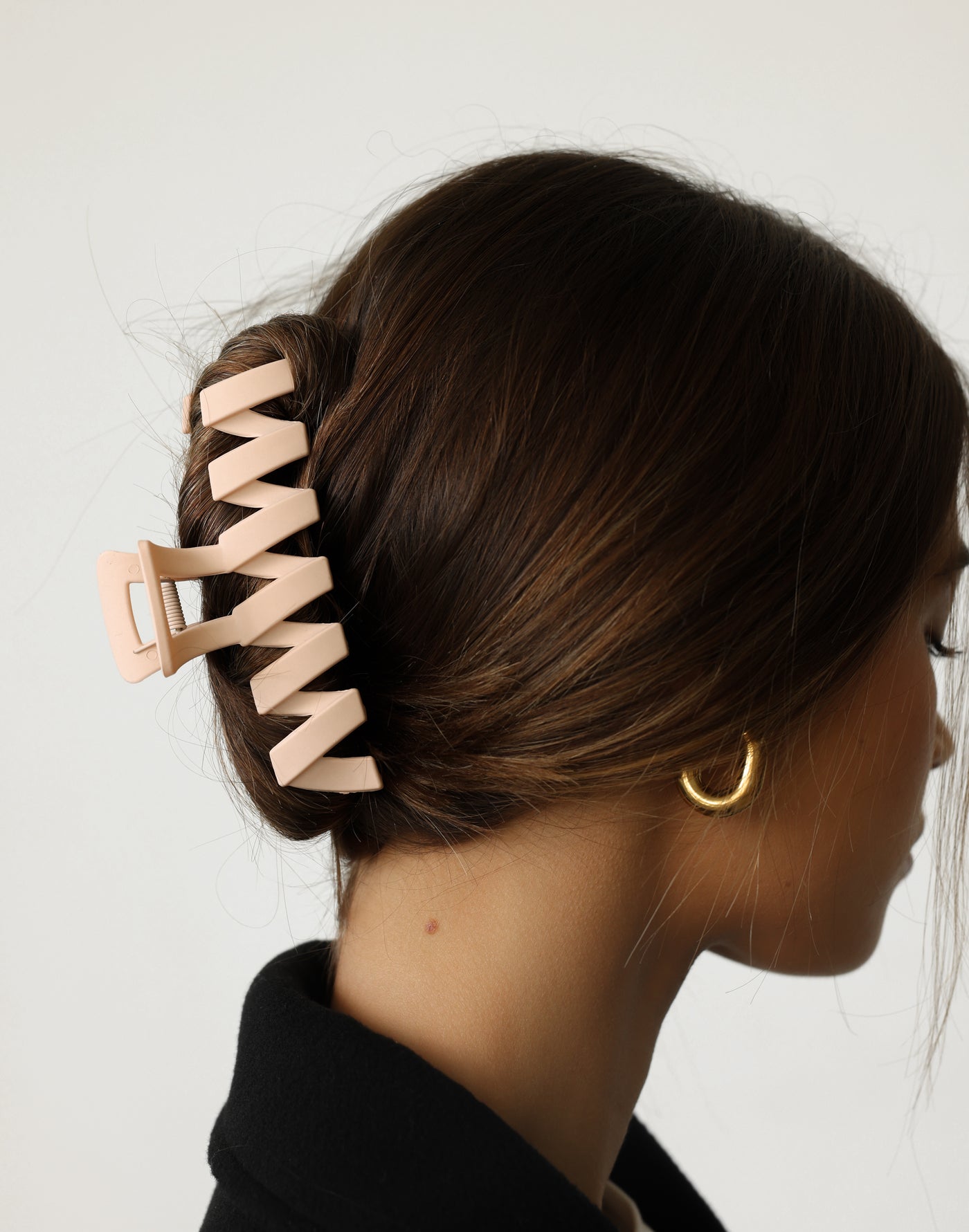 KAITLYN HAIR CLIP (ALMOND) Introducing the Kaitlyn Hair Clip, a chic accessory that combines style with functionality. This claw clip features a trendy zigzag detailing, adding a touch of flair to your hairstyle. Designed for both practicality and aesthetic appeal, the Kaitlyn Hair Clip is perfect for securing your hair in place effortlessly. Whether for everyday use or special occasions, it offers a stylish solution with its versatile design. Enhance your look with the Kaitlyn Hair Clip, ensuring a polished and fashionable appearance with every wear.
