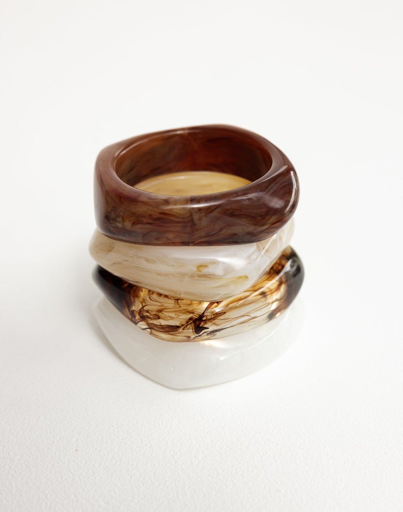 TAMIYA BRACELET (CUSTARD SWIRL) - CHARCOAL EXCLUSIVE Introducing the Tamiya Bracelet, a bold statement piece in a custard swirl colour. With its chunky, abstract shape, this bangle-style bracelet adds flair to any outfit. Perfect for elevating your everyday look with effortless style.