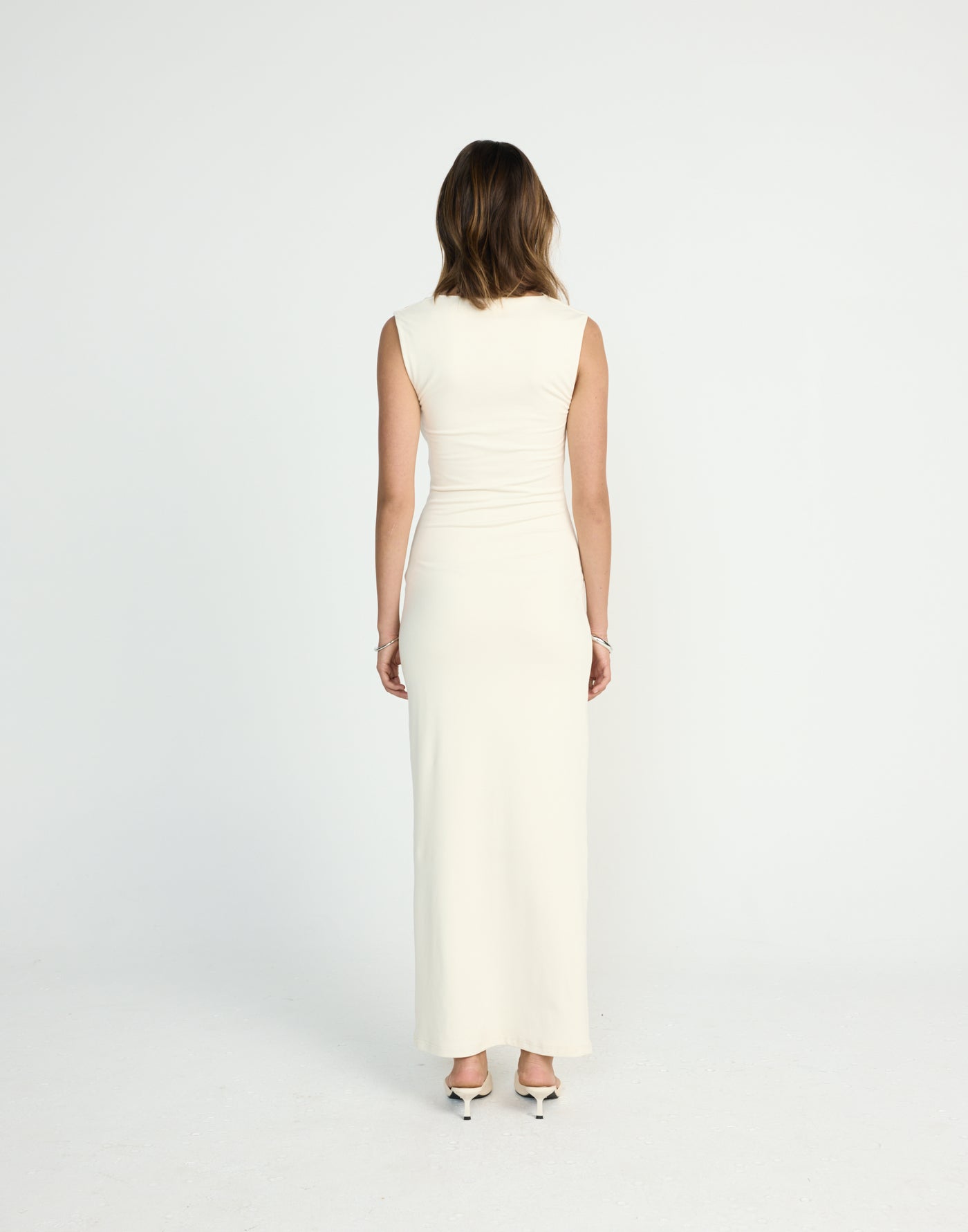 Florrie Maxi Dress (Oat) | CHARCOAL EXCLUSIVE | Bodycon butter jersey fabrication cowl neck maxi dress - Women&
