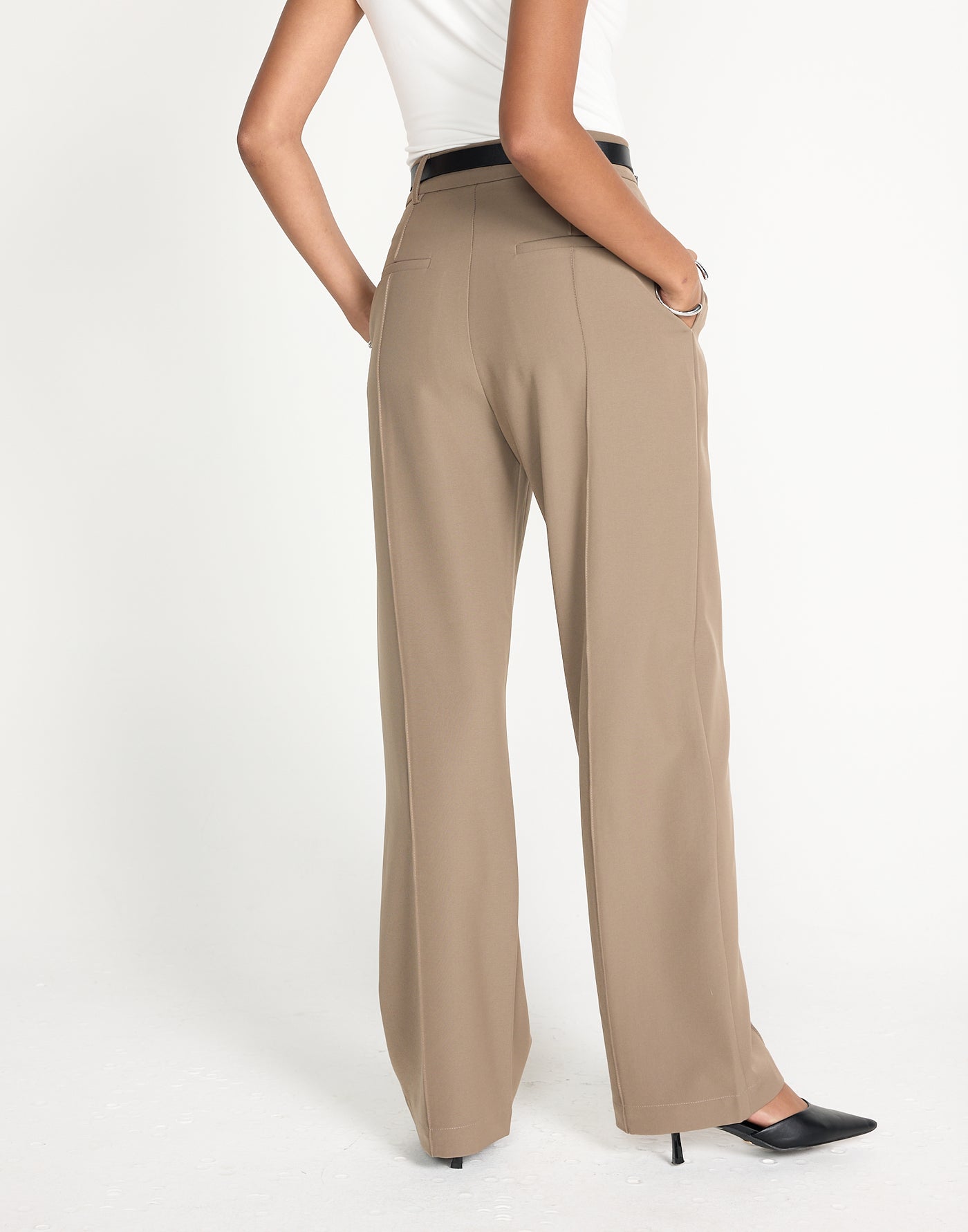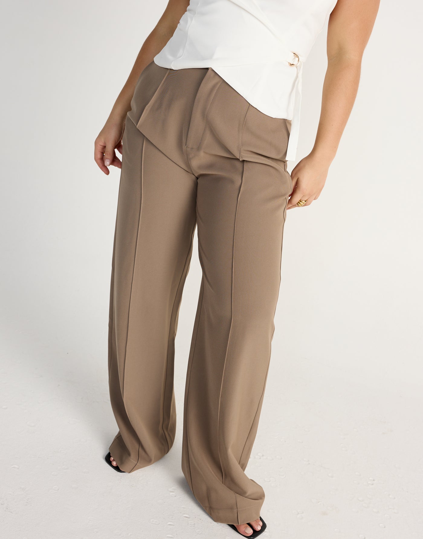 VANDELIA PANTS (MUSHROOM) - CHARCOAL EXCLUSIVE The Vandelia Pants are a wardrobe essential, offering a polished, sophisticated look with effortless comfort. The high-waisted, straight-leg design creates a flattering, sleek silhouette that pairs perfectly with any top. Whether you're dressing up for work or keeping it chic on the weekend, these pants are the versatile piece you'll reach for again and again.