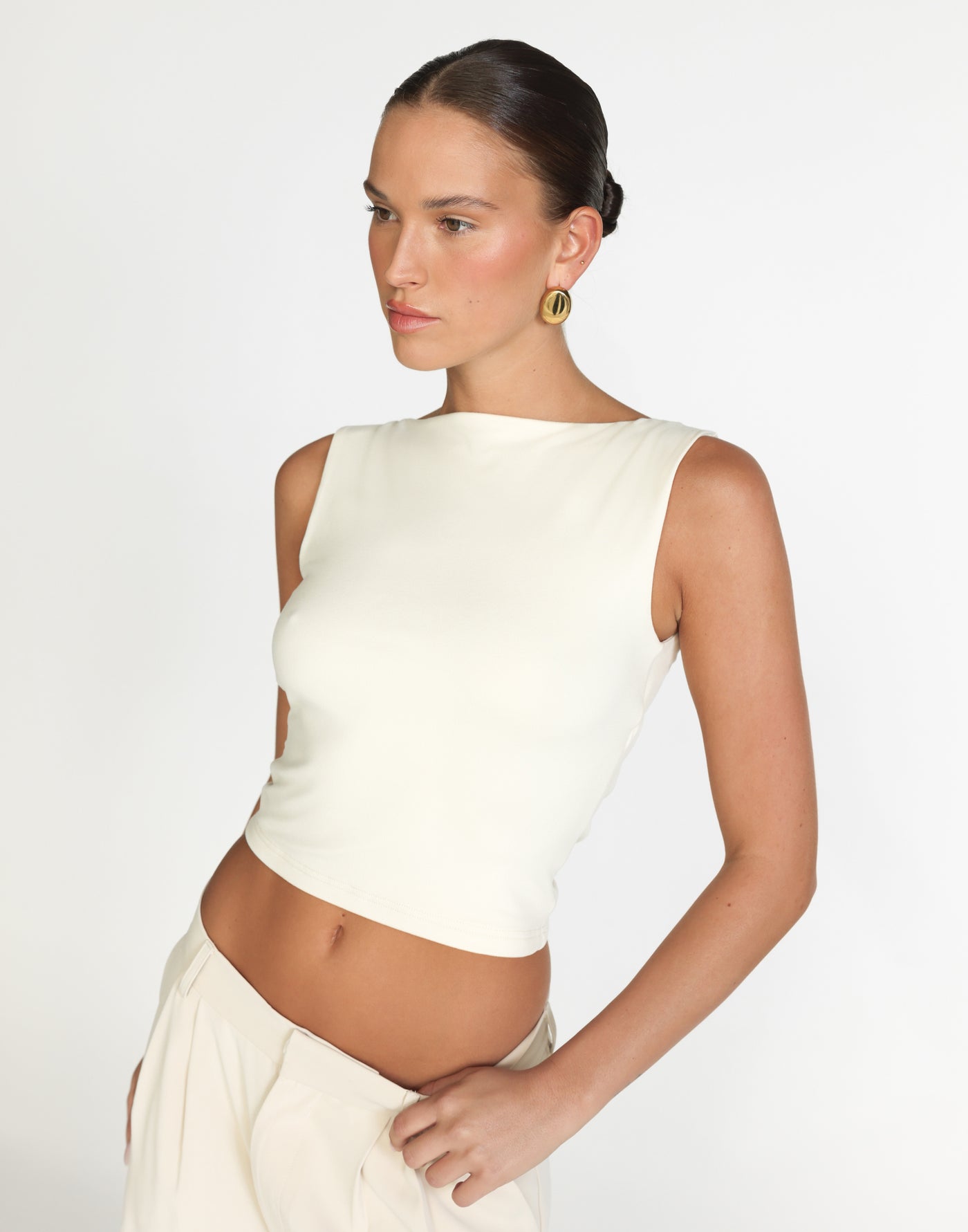 ROMINA TOP (OAT) - CHARCOAL EXCLUSIVE Introducing the Romina Top: crafted from soft butter jersey fabrication, this bodycon top features adjustable waist ties and grip tape for a secure fit. The boat neck adds an elegant touch, while the lined interior ensures comfort and quality.