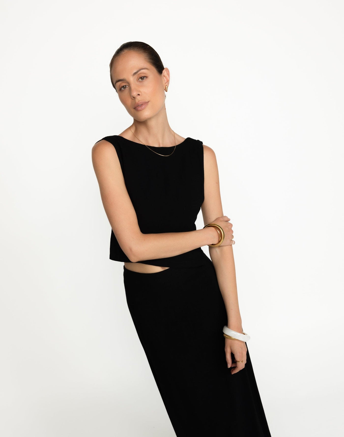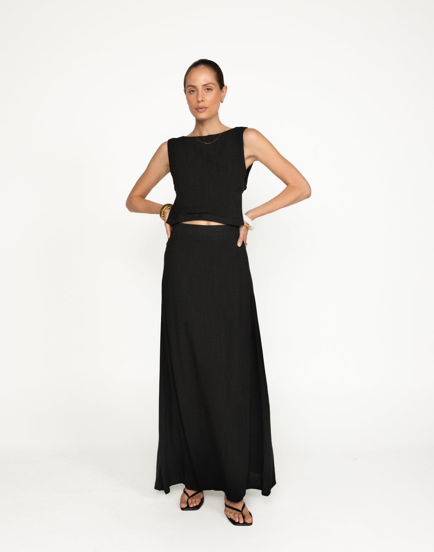 ALEAH TOP (BLACK) - CHARCOAL EXCLUSIVE Introducing our Aleah Top, designed for both style and comfort. Crafted from a linen blend, it's perfect for various occasions. A style that combines fashion and functionality seamlessly. The open back design adds a touch of sophistication, making it a versatile addition to your wardrobe.
