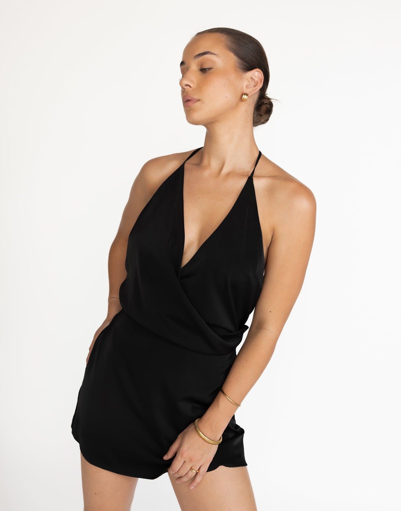 Cabaret Mini Dress (Black) | CHARCOAL Exclusive - Halter Mini Black Dress - Women&