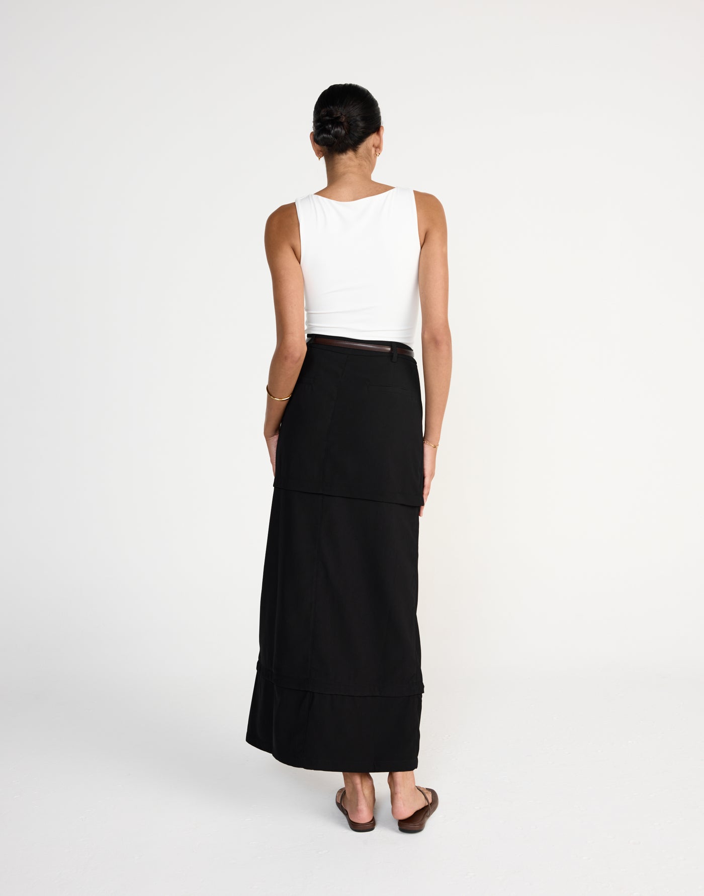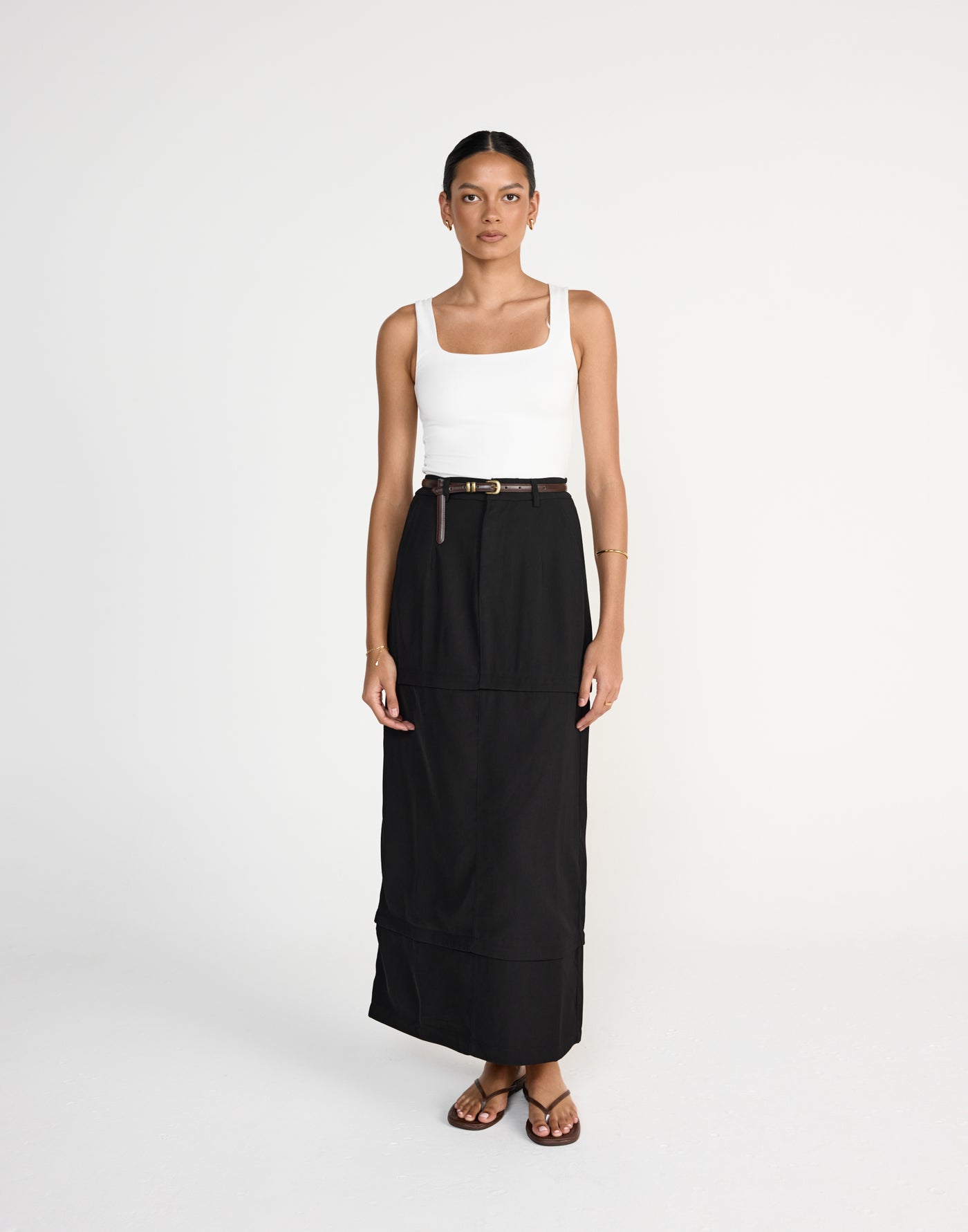 - Zipper detail converting maxi skirt to mini