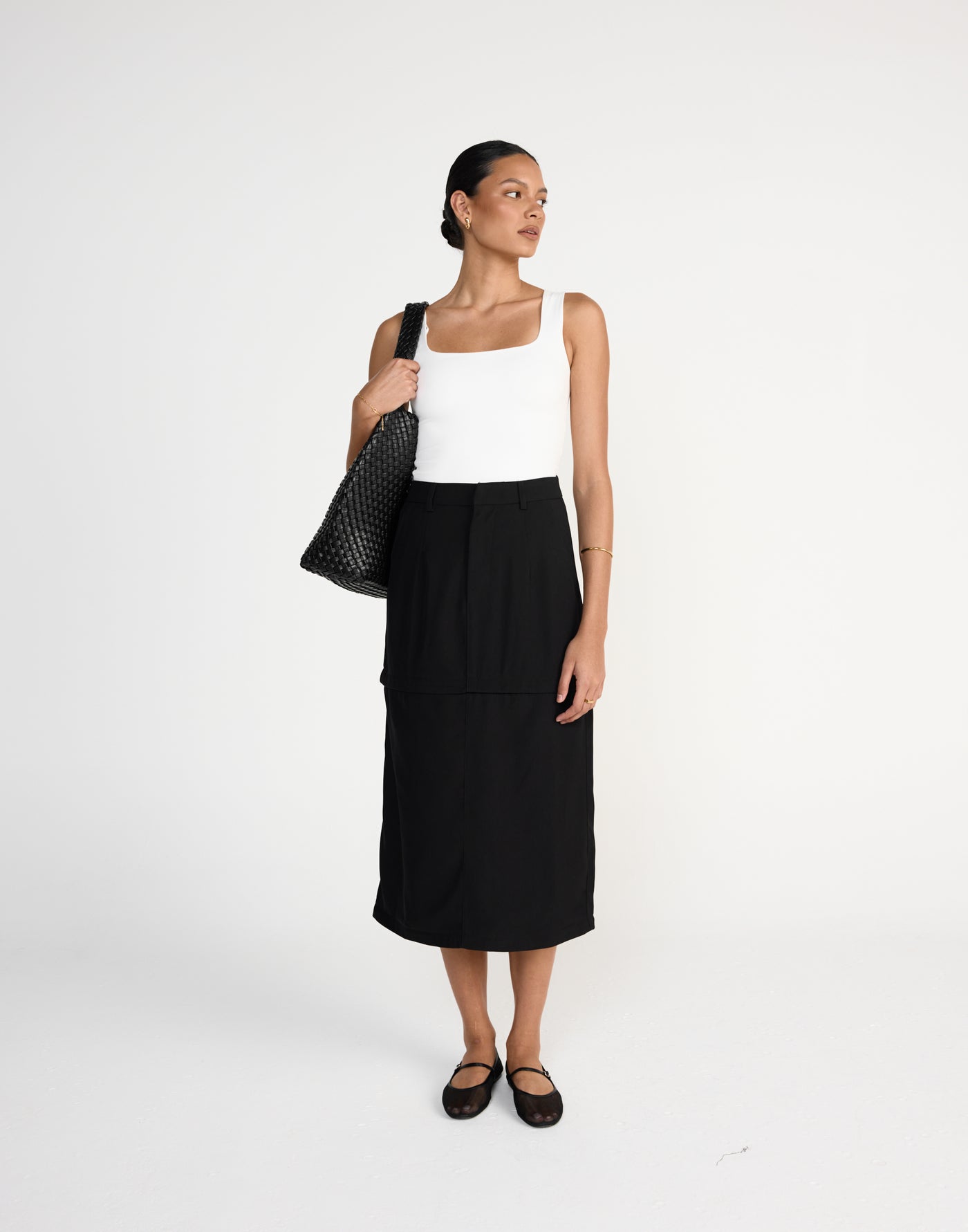 - Black mid-rise skirt