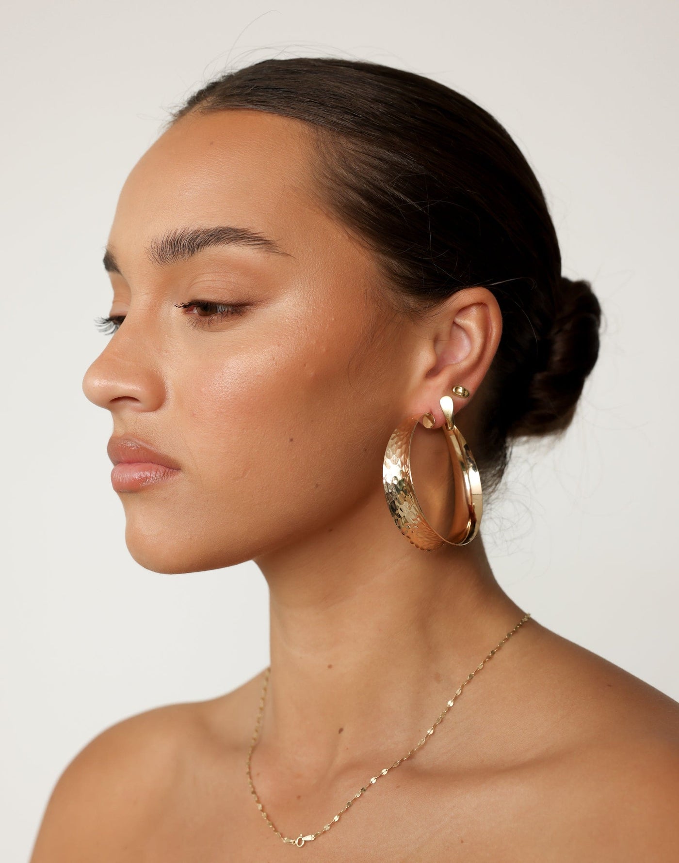 Jaydene Earrings (Gold) - Large Hammock Style Hoop - Women&