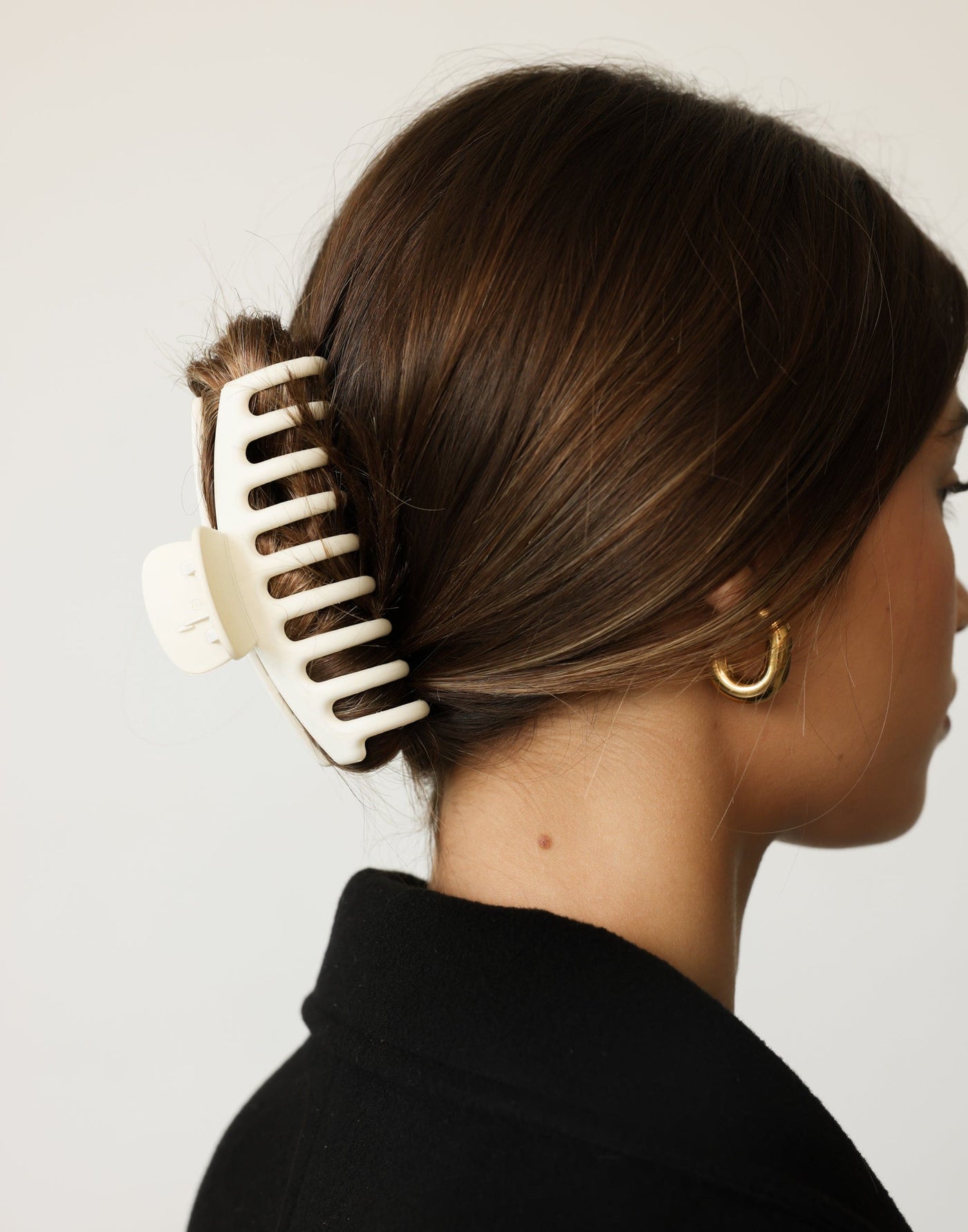 KATHY HAIR CLIP (OAT)  Introducing the Kathy Hair Clip, a stylish and practical accessory for your hair. This claw clip style features rounded teeth, providing a secure and comfortable hold. Perfect for effortlessly elevating your hairstyle, the Kathy Hair Clip is a must-have addition to your accessory collection.