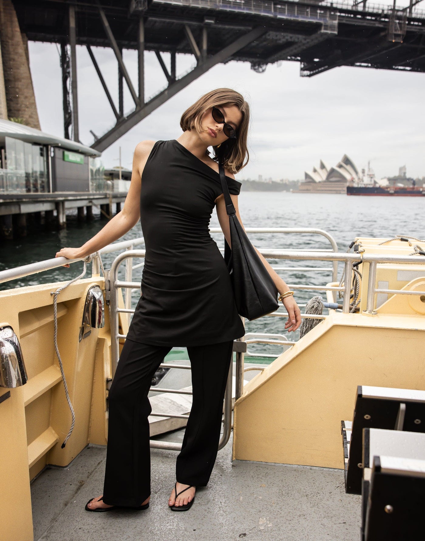 LULU MINI DRESS (BLACK) - CHARCOAL EXCLUSIVE Introducing the Lulu Mini Dress, a bold and flattering piece that makes a statement. This off-the-shoulder bodycon design highlights your figure, while the gathering on the sides adds a touch of detail and sophistication. The flared skirt provides a playful, feminine flair, creating a perfect balance of style and comfort. With a pull-over fit and lined for added ease, the Lulu Mini Dress is the ideal choice for a night out or any event where you want to stand out with confidence and grace.