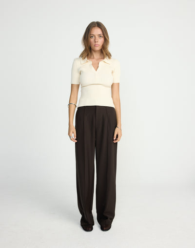 MICHIKO TOP (OAT) - CHARCOAL EXCLUSIVE Introducing the Michiko Top, a stylish and versatile piece that adds a touch of sophistication to any outfit. Crafted from ribbed fabrication, this top offers a stretchy, comfortable fit that moves with you. The collar and button-up detail elevate its classic design, while the longline cut and cap sleeves create a modern, flattering silhouette. Whether paired with jeans or tucked into a skirt, the Michiko Top is the perfect blend of chic and effortless style.