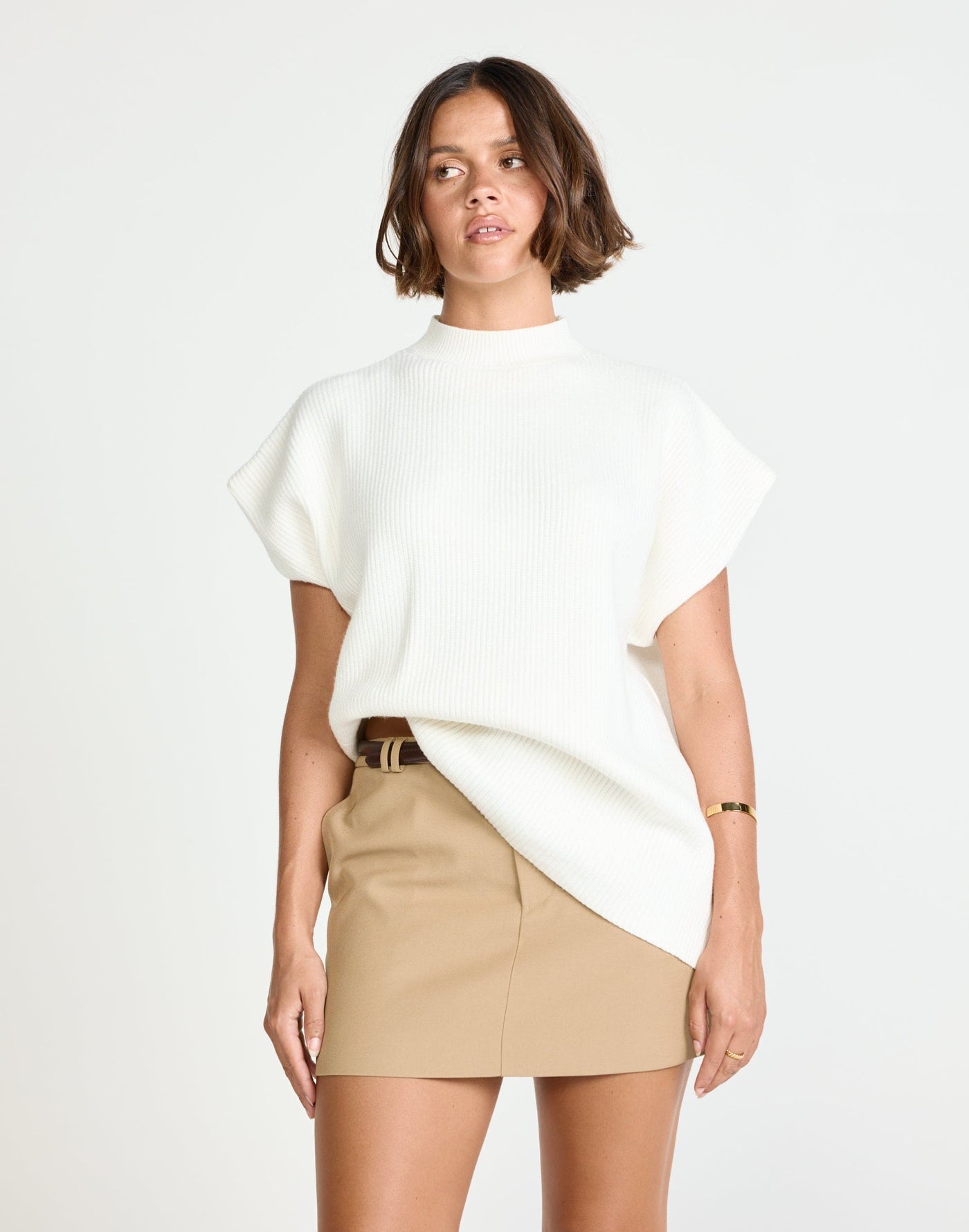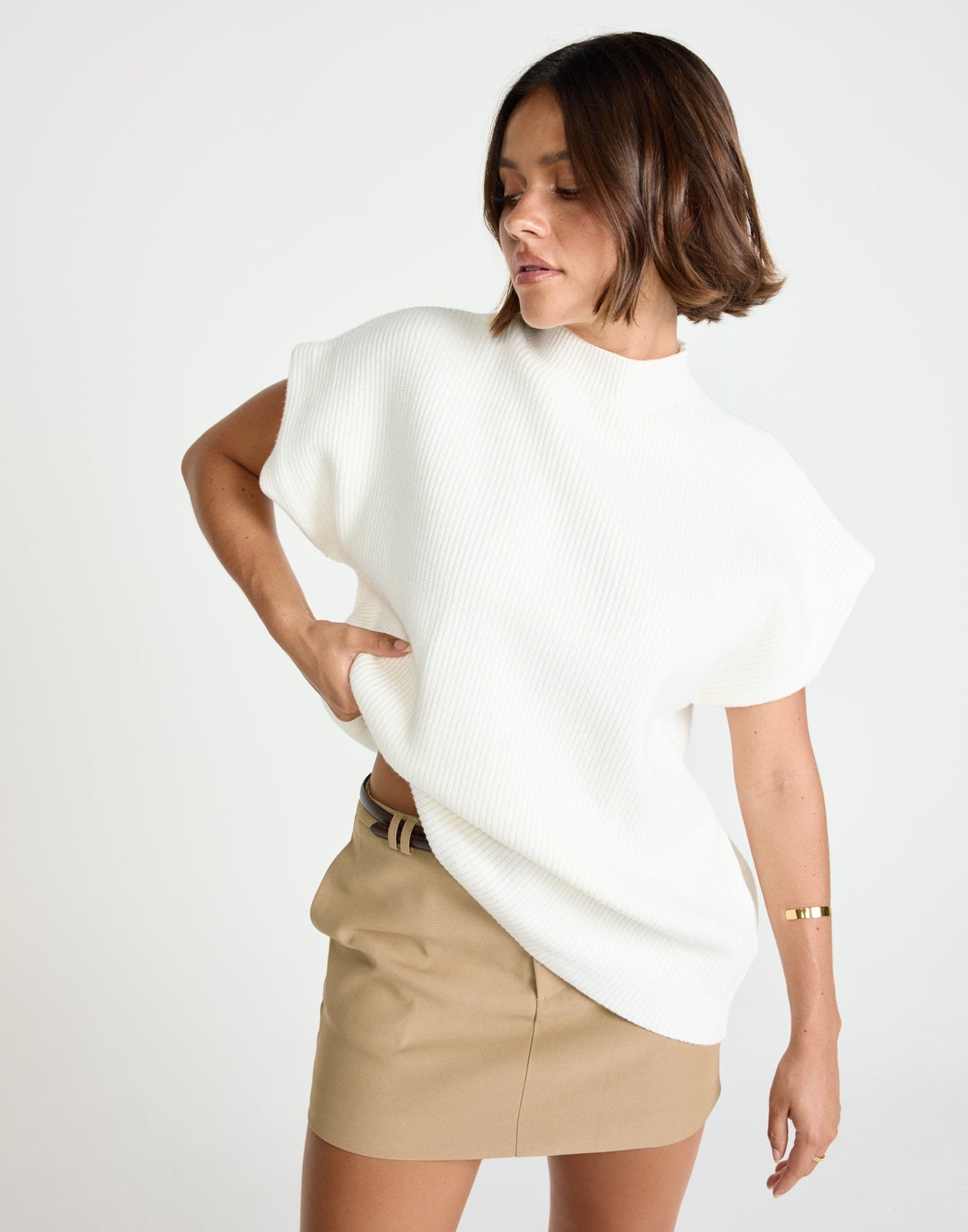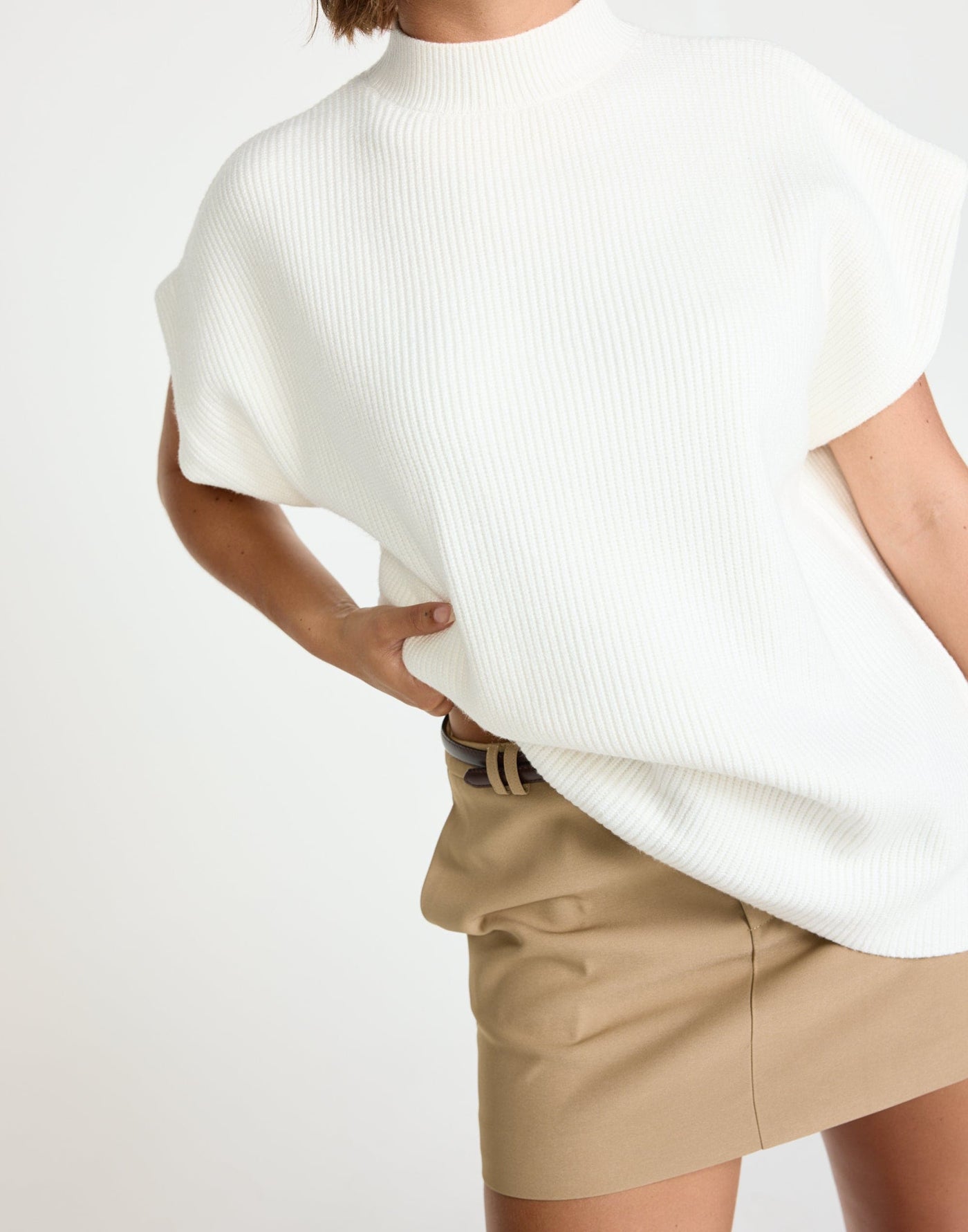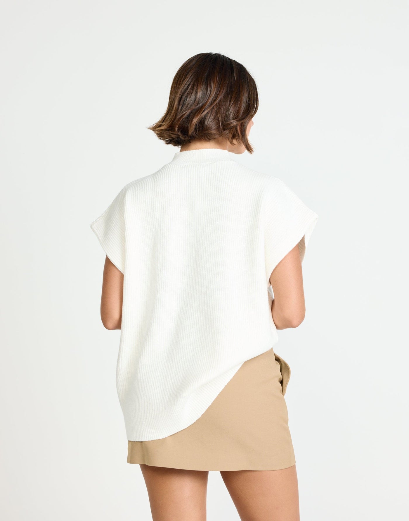 Riley Vest (Off White) | CHARCOAL Exclusive - Mock Neck Oversized Cap Sleeve Vest - Women&