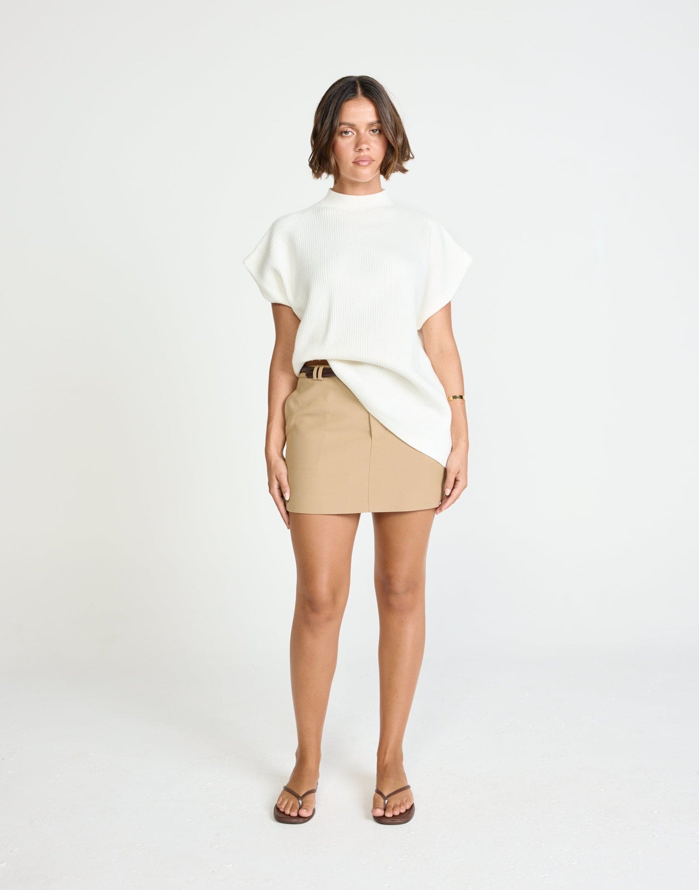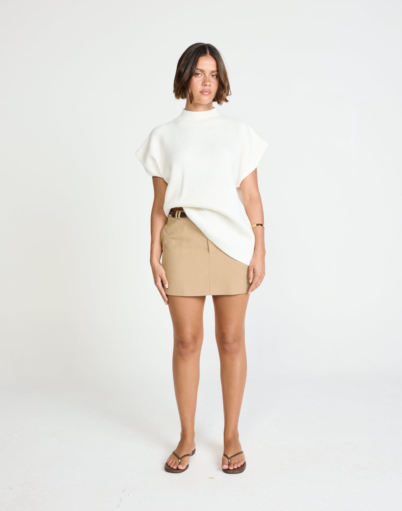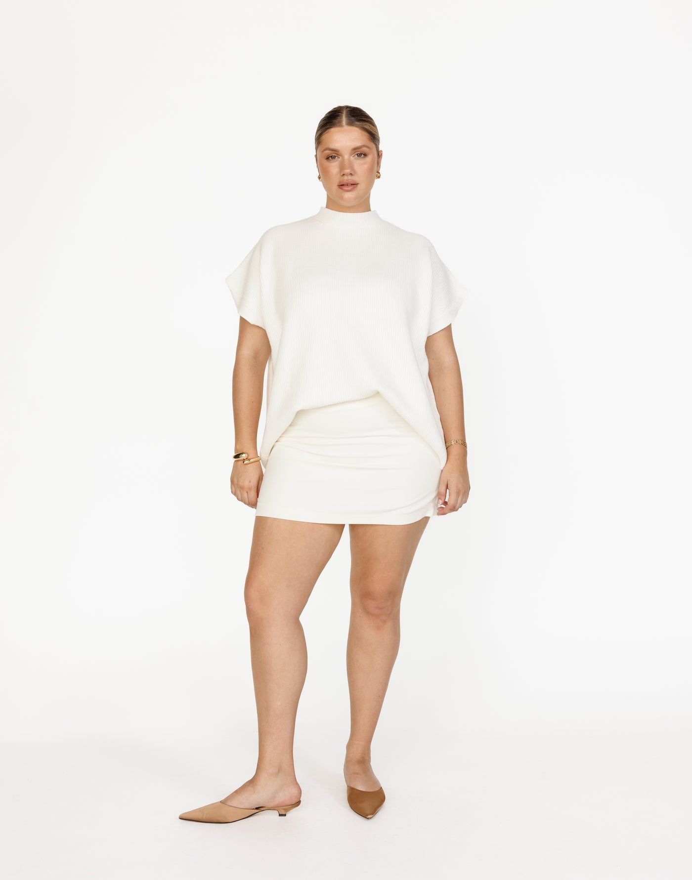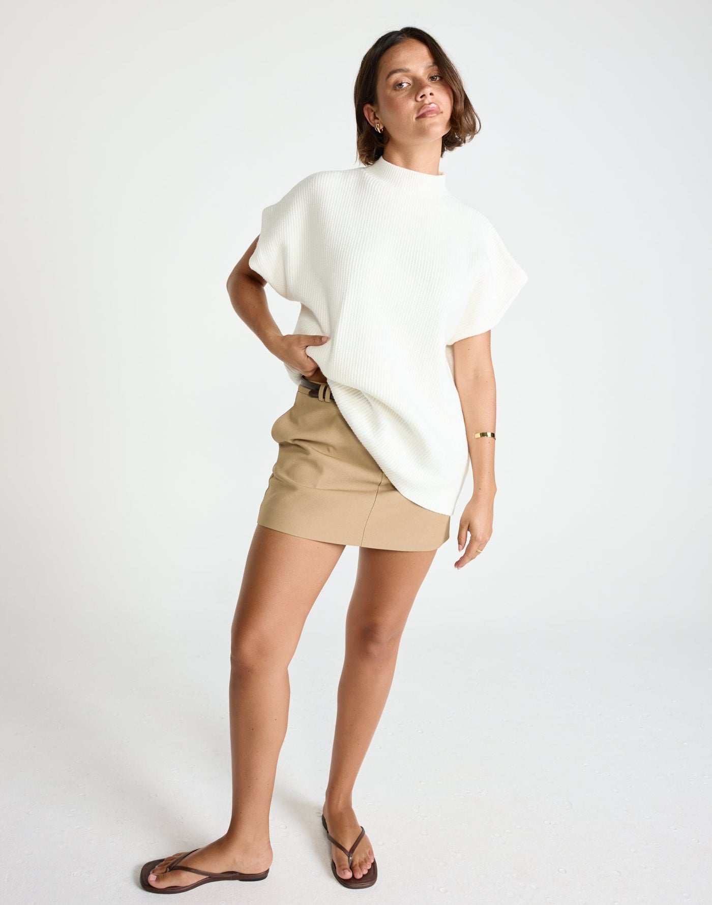 Riley Vest (Off White) | CHARCOAL Exclusive - Mock Neck Oversized Cap Sleeve Vest - Women&