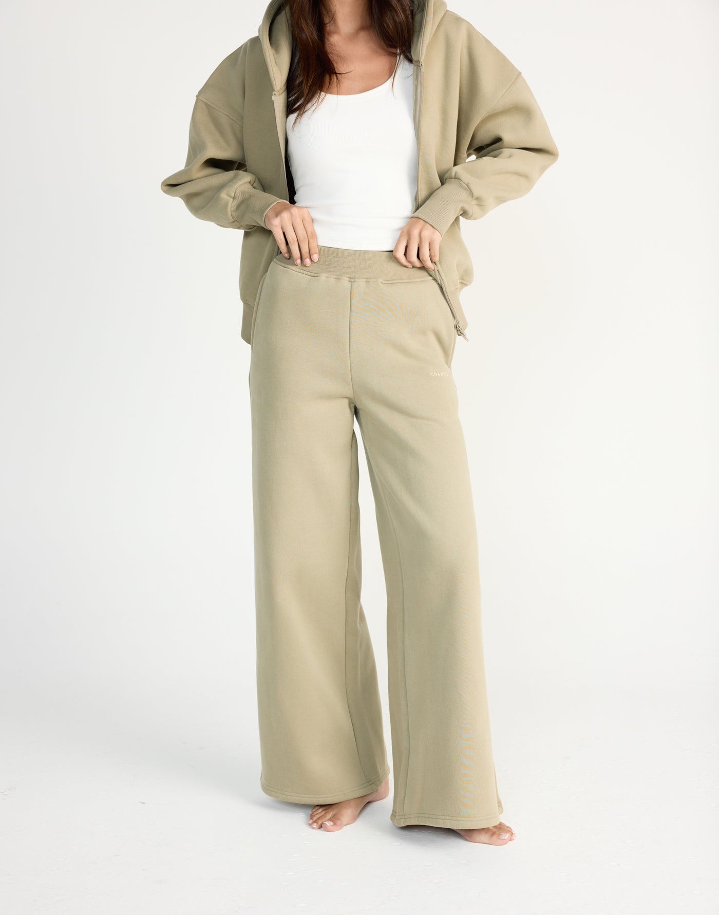 The River Wide Leg Tracksuit Pants are a fusion of comfort and style. Featuring "CHARCOAL" embroidery on the left pant leg, these pants exude urban sophistication, while the fleece lining ensures warmth and coziness.