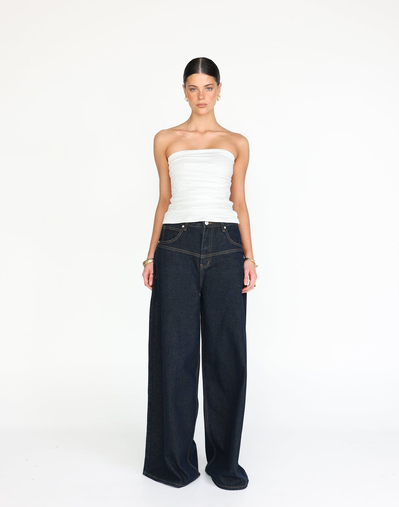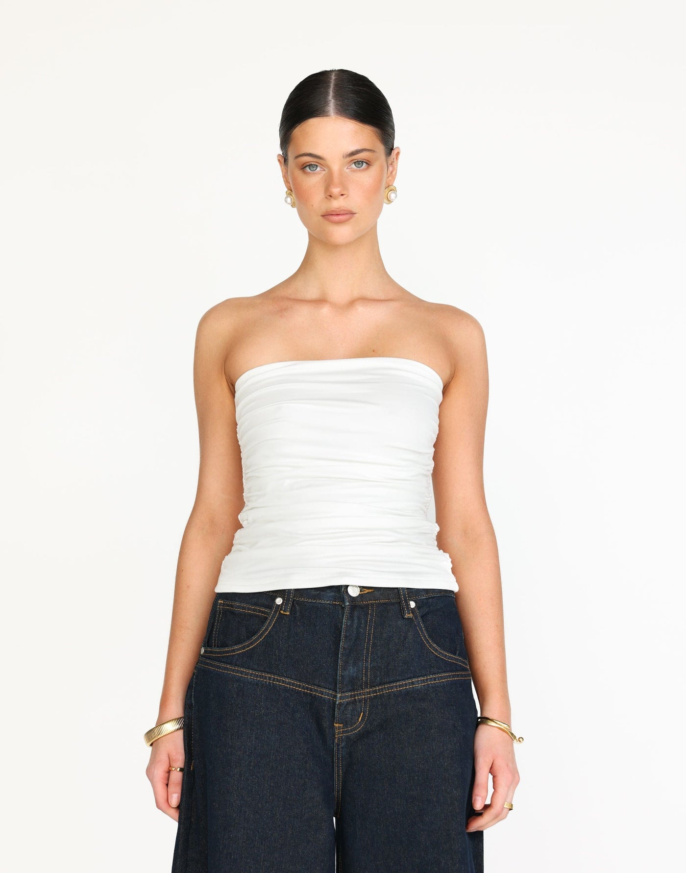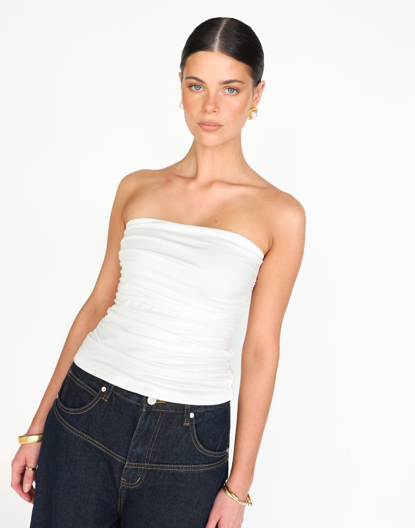 Sarie Top (White) | CHARCOAL Exclusive - Strapless Gathered Jersey Top - Women&