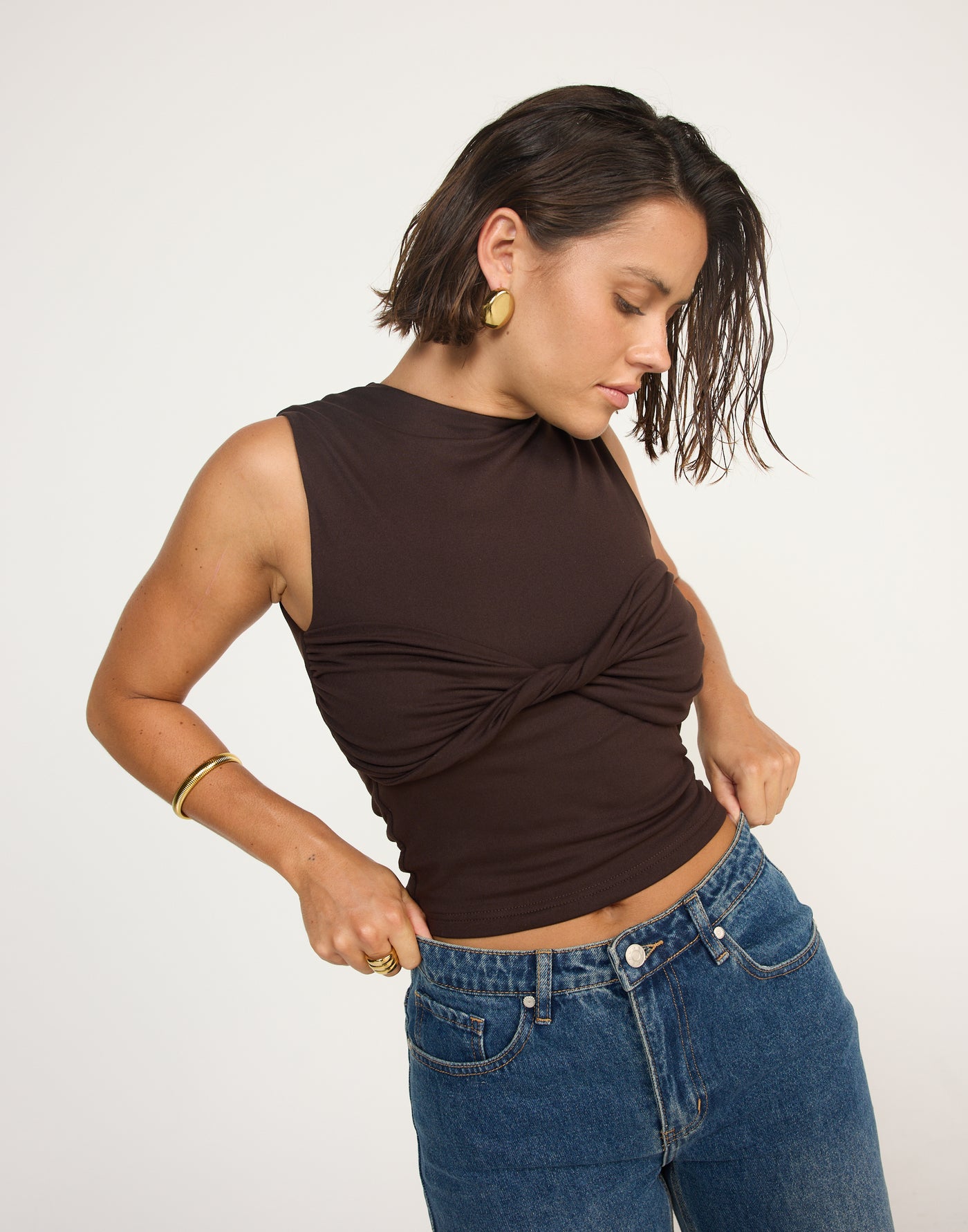 SEASIDE TOP (CHOCOLATE) - CHARCOAL EXCLUSIVE Elevate your basics with the Seaside Top, designed in a soft butter jersey fabrication for ultimate comfort. The twisted bust detail adds a touch of modern sophistication, while the boatneck design gives it a timeless, chic look. With its bodycon fit, this top effortlessly shapes and flatters, making it perfect for layering or wearing solo. Whether paired with jeans, skirts, or high-waisted trousers, the Seaside Top is a versatile piece that adds an effortlessly stylish edge to any outfit.