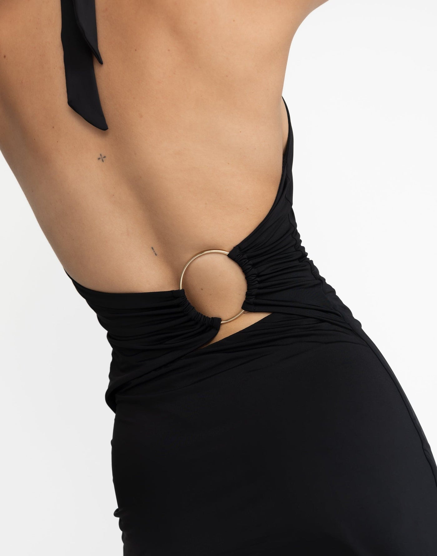 Introducing the Speakeasy Mini Dress, a captivating piece that blends sophistication with bold flair. The high-neck and tie-up halter add a touch of elegance, while the low back with a gold ring detail brings a subtle, eye-catching twist. The bodycon fit contours your figure, while the ruched detailing on the sides creates a flattering effect. With a sleek, pull-over style and a lined interior for comfort, the Speakeasy Mini Dress is perfect for any occasion where you want to stand out and make a statement.
